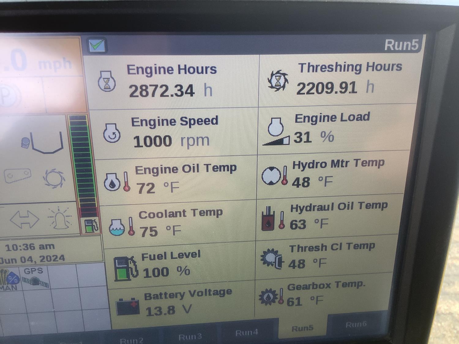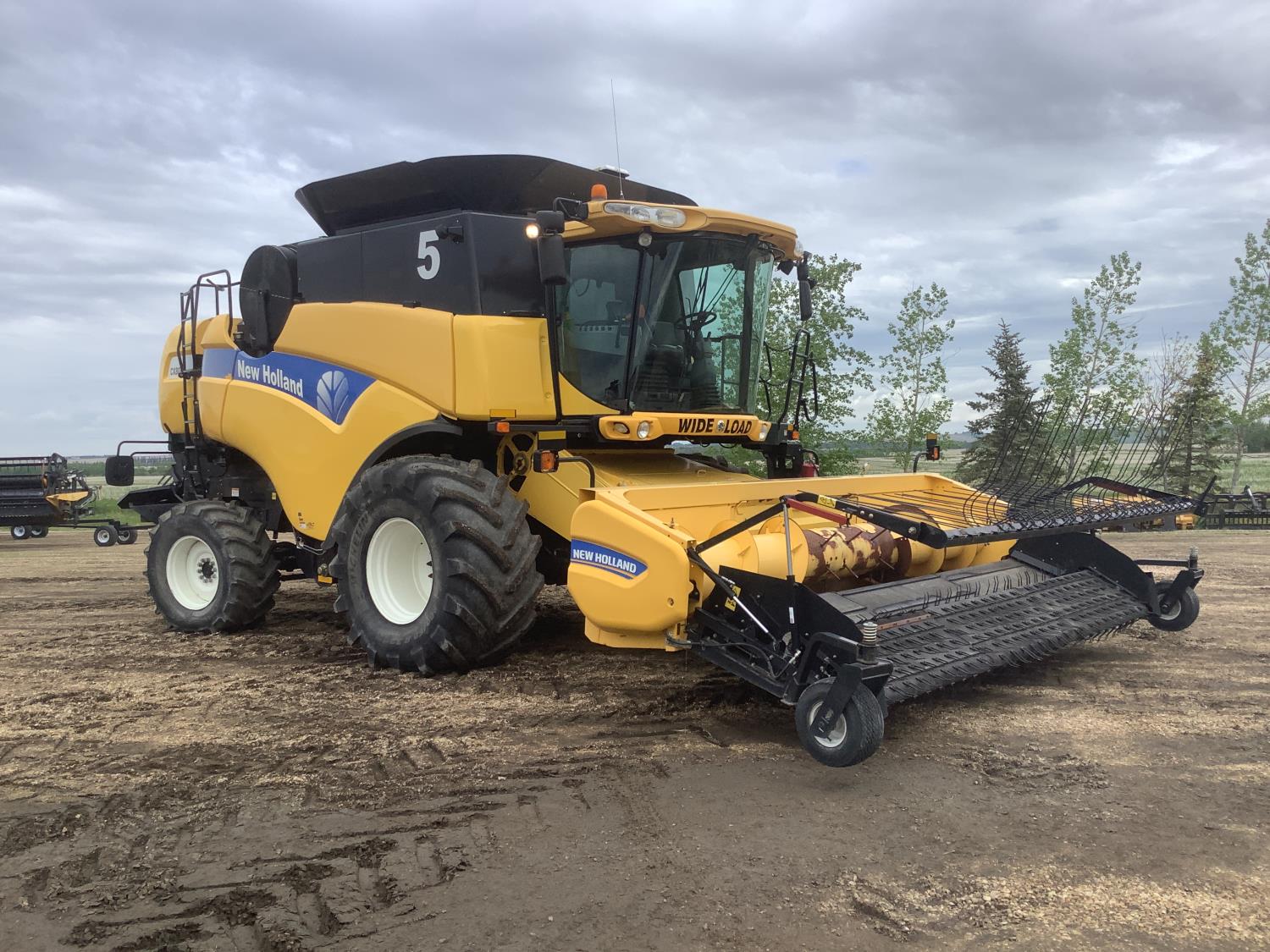 New Holland 790 15 ft pick-up header, Swath Master pickup, fore & aft, reverser, lateral tilt, chaff spreader, chopper, grain tank extensions, Conventional straw walkers, 4 wheel drive kit, long unload auger, self leveling sieves, locking differential, rear tow hitch, operators manual, A/C, radio, buddy seat, New Holland GPS system, IVECO 8.7L engine, leather heated seat, 900/60R32 front tires, 600/65R28 rear tires