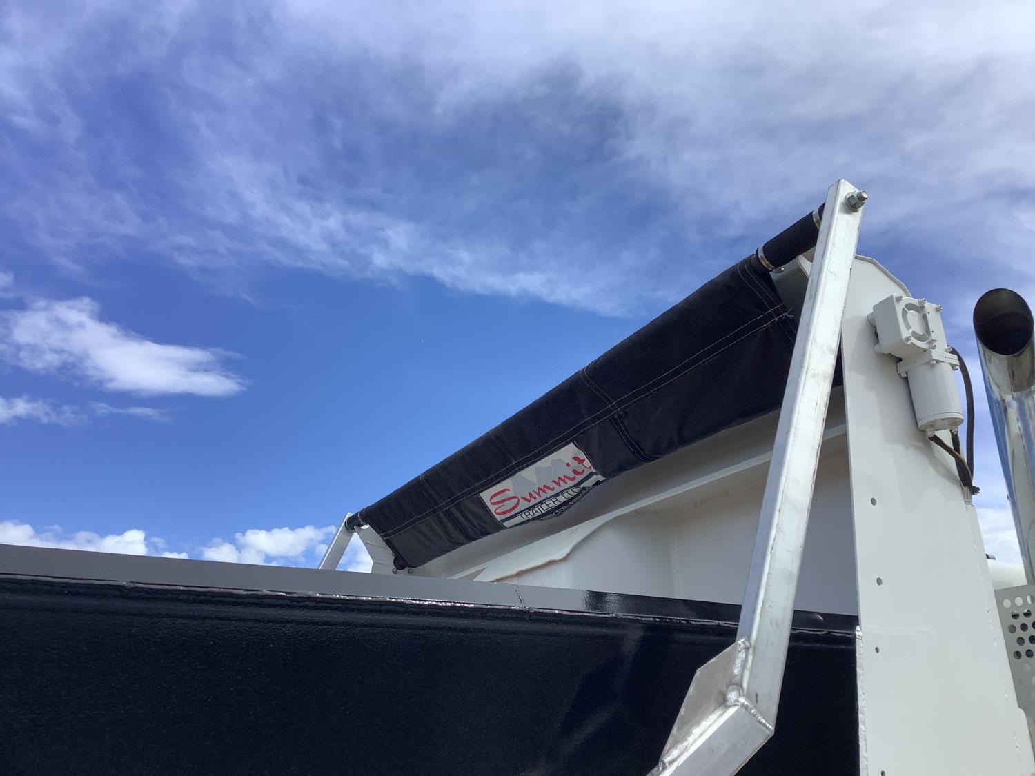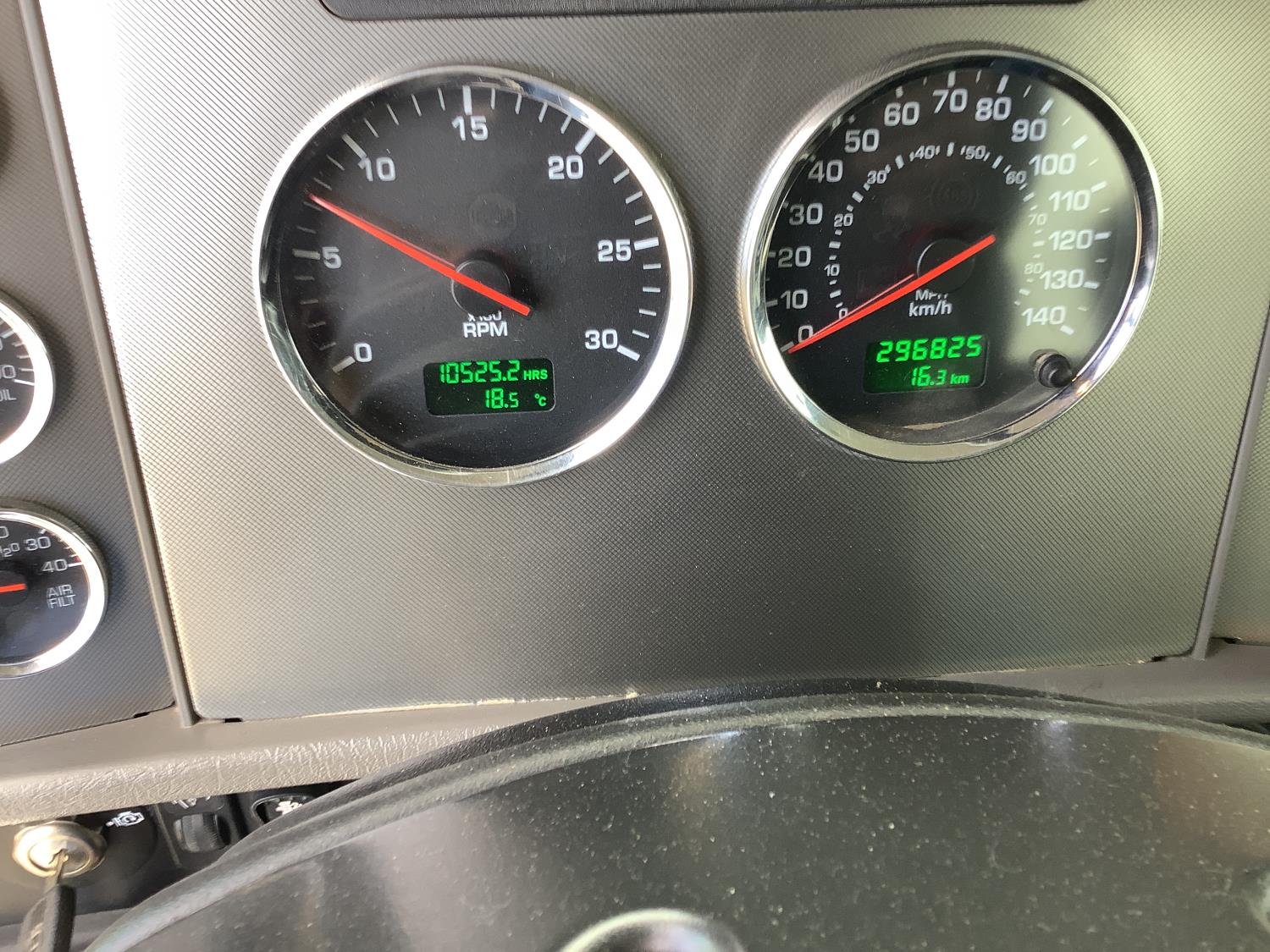 Paccar PX-9 6 cylinder 300 HP engine, Allison automatic transmission, A/C, cruise control, radio, Brandon 15' steel box, electric tarp, tool box, Hendricksen air ride suspension, 14,600 lb front axle, 40,000 lb rear axles, full lockers, all aluminum wheels, 315/80R22.5 front tires, 11R22.5 rear tires