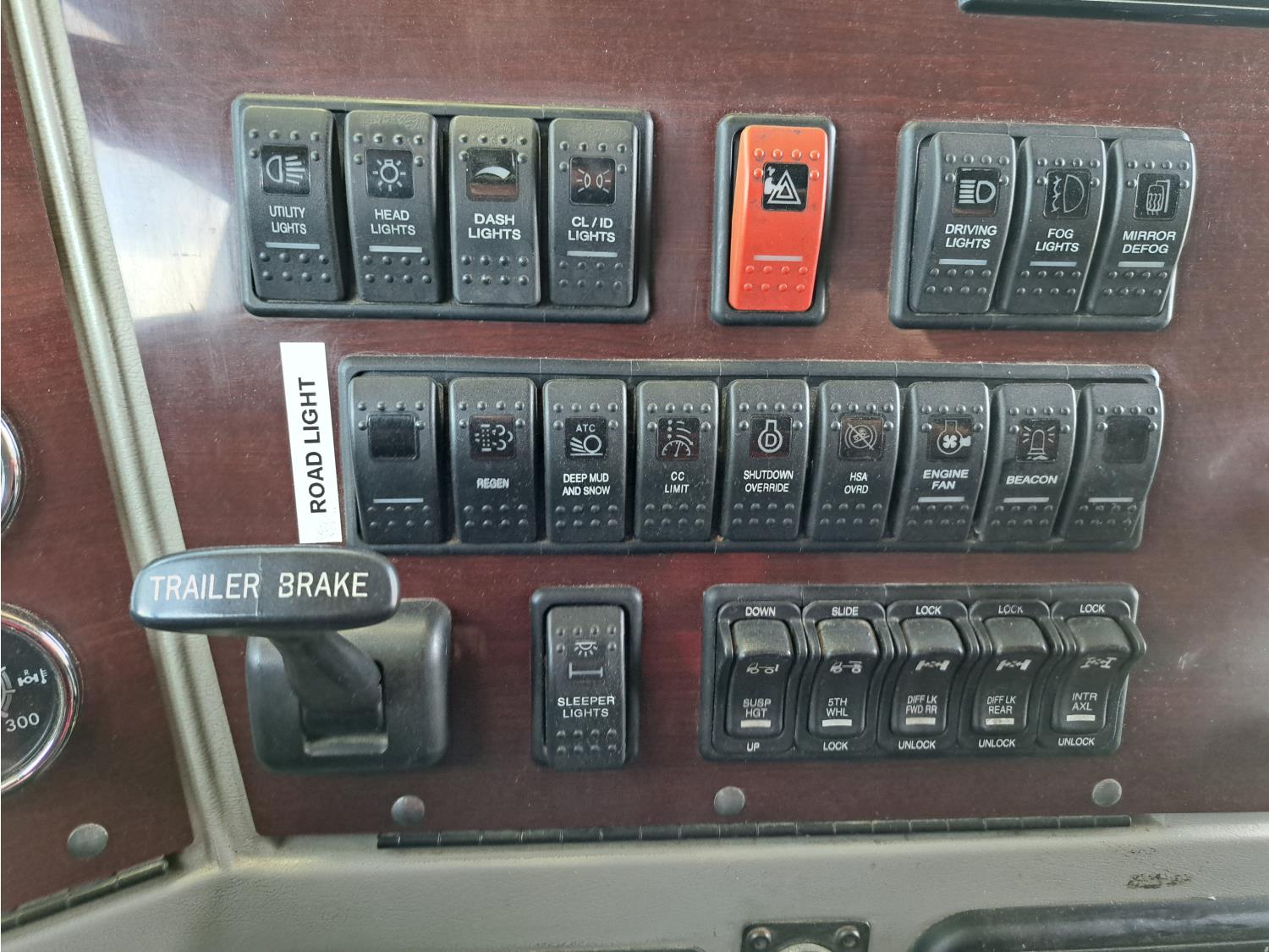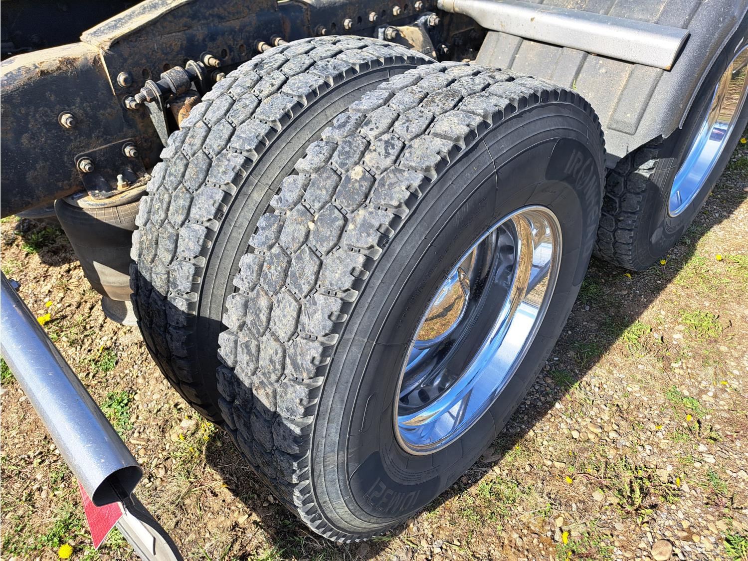 Detroit DD15 14.8 L 6 cylinder 505 HP diesel engine, DEF deleted, engine heater, engine brake, emissions deleted, Detroit DT12 12 speed auto shift transmission, HUX power unit will require alternator, mid rise 84 inch sleeper, fridge, A/C, cruise control, air ride seats, radio, CB radio, stereo, Herd aluminum moose bumper, Airliner air ride suspension, 13,300 lb front axle, 40,000 lb rear axles, full lockers, 3.31 ratio, 244 inch WB, tire chains, all aluminum wheels, 11R22.5 tires