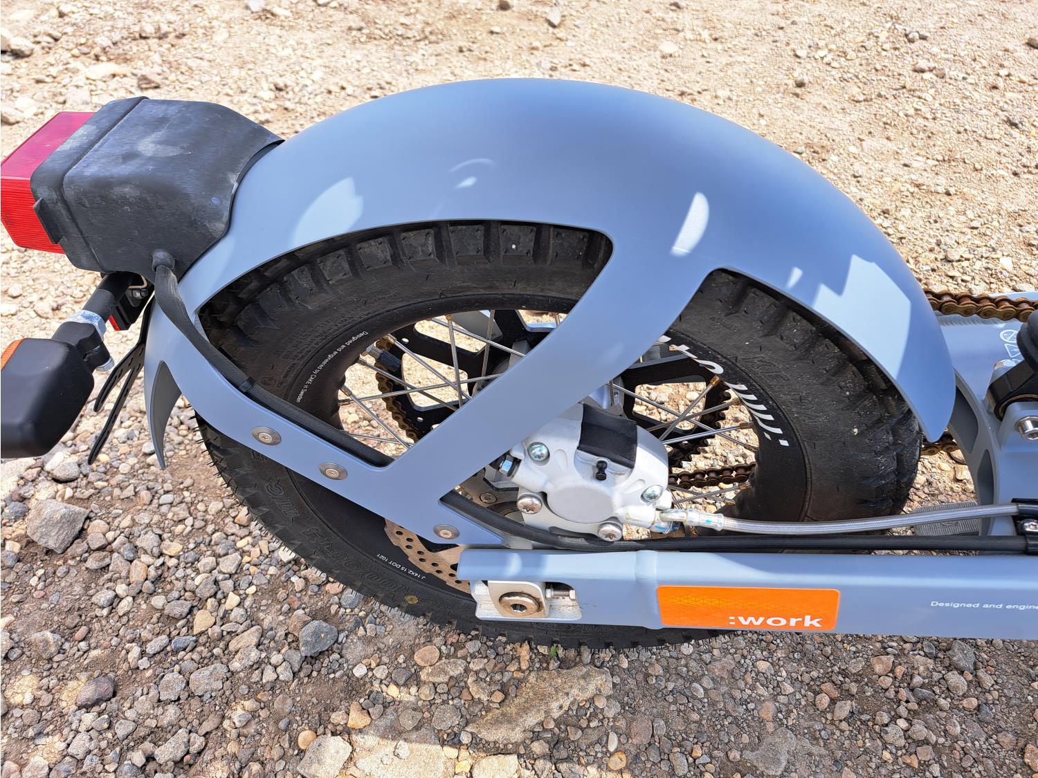 Dana CLASS H electric motor, 03XL battery 3.5 kWh, LED screen, disk brakes, chain drive, full suspension, headlights, tail light, turn signals, kickstand, front and rear basket, Kenda 100/90-14 off road tires,