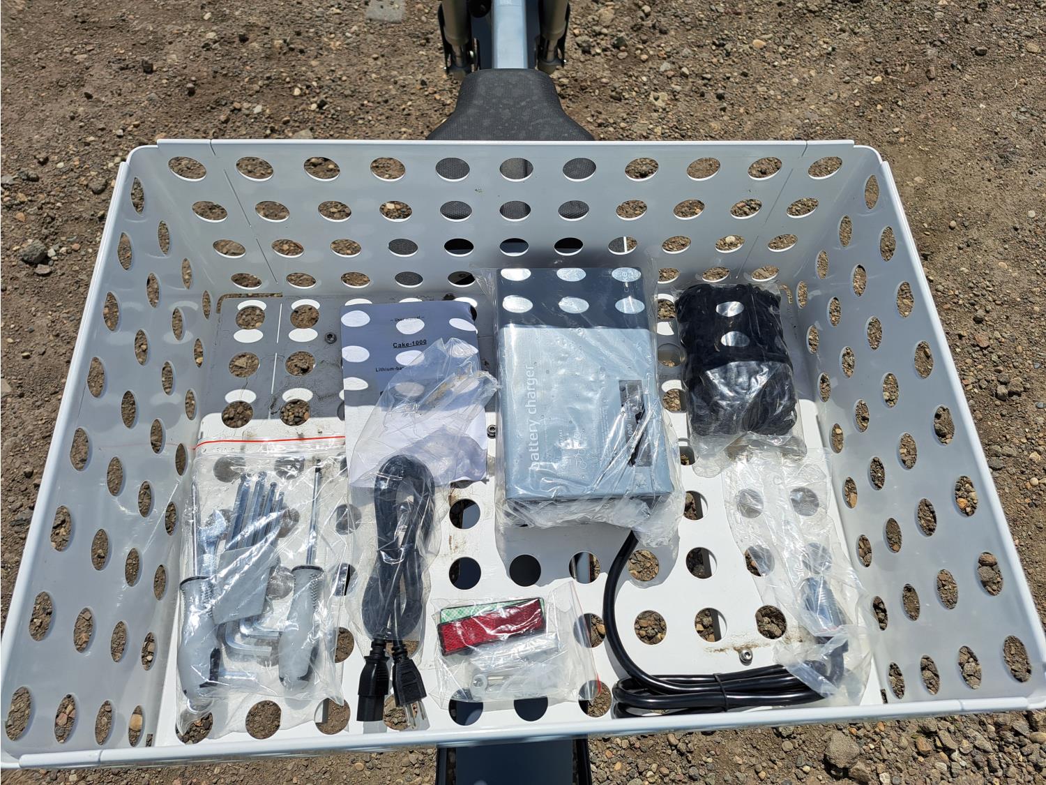 Dana CLASS H electric motor, 03L battery 2.5 kWh, LED screen, disk brakes, chain drive, full suspension, headlights, tail light, turn signals, kickstand, front and rear basket, Kenda 100/90-14 off road tires,