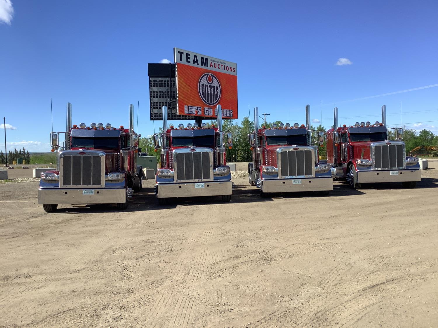 There are 4 all identical trucks coming in for the Jun 22 auction. These trucks have $19,000 worth of chrome options, light package, rear fenders. They all are approximately 9 months old. This is the last chance to buy a long hood Peterbilt. Seller is a good customer of ours and has purchased new 2025 models. We will be putting brand new, AB CVIP on these trucks at the last day of the sale giving the out of province buyers 14 days to get the trucks registered. Thanks Clayton.