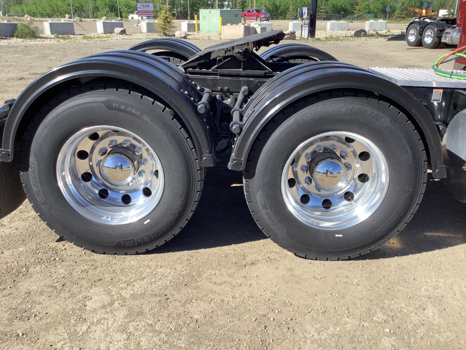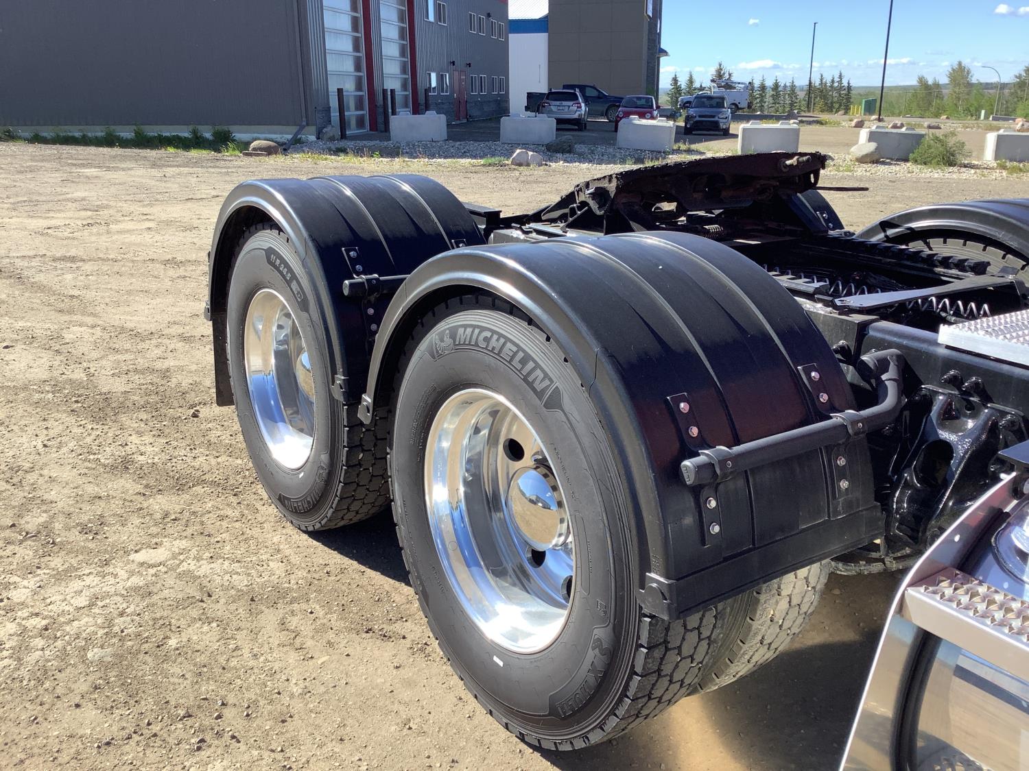 Cummins X15 605 HP engine, engine brake, Eaton 18-SP ULTRA SHIFT PLUS 18 speed auto shift transmission, 3.91 gear ratio, fridge, A/C, leather interior, air ride seats, 58" low roof sleeper with walk-in platinum interior, air ride cab, air ride suspension, 12,500 lb front axle, full lockers, 244 inch WB, super 40,000lb rear axles, disc brakes, dual stacks and air breathers, truck is only 9 months old. Comes with factory 5 year or 200,000 km warranty., all aluminum wheels, 11R24.5 front tires