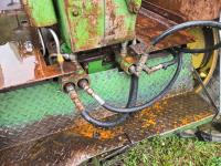 John Deere loader, 72 inch bucket, bale forks, John Deere 6.6 L 6 cylinder diesel engine, 95 PTO HP, 8 speed partial synchro transmission, open station platform, 540/1000 PTO, 2 rear hydraulic outlets, 18.4-30 rear tires