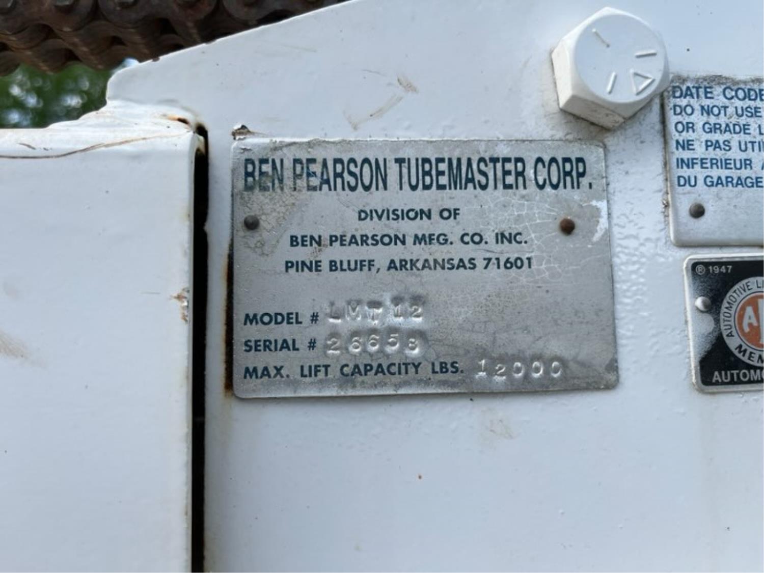 90 Ben Pearson Tubemaster Corp LMT12 12,000 lb Heavy Duty Vehicle Lift