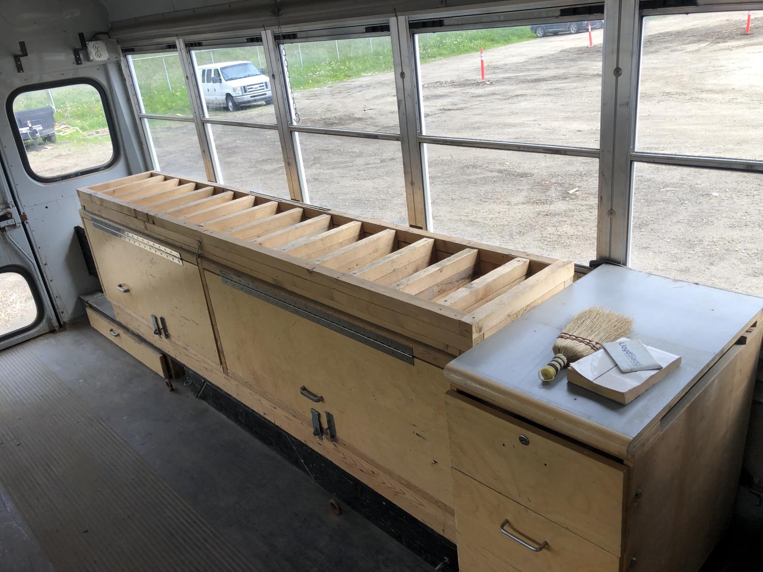 6.6L Duramax diesel, automatic transmission, mid camper conversion, has cabinets, rear duals 225/75R16 tires