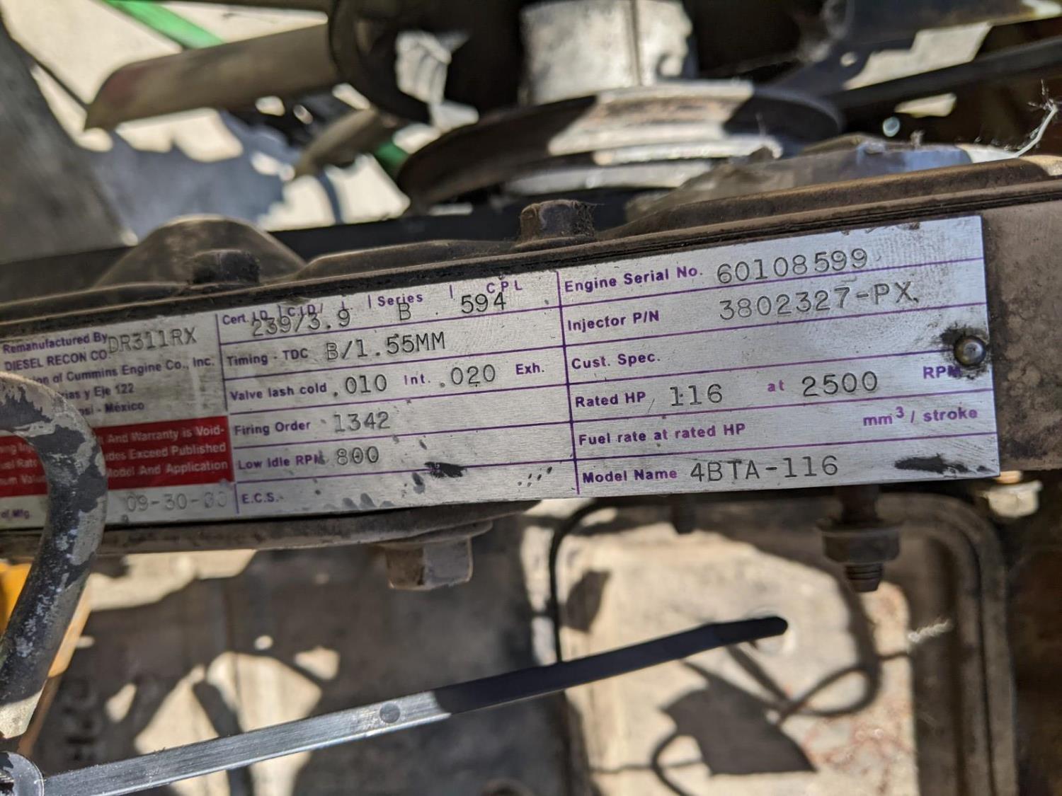 110HP at 2200RPM, 4 cylinder, removed from salvage Hyundai 130 LC-3 Excavator, Missing starter and injector pump, was running when removed from machine