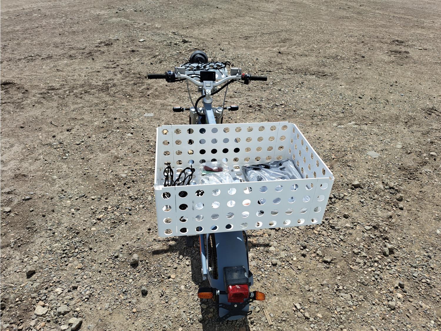 Dana CLASS H electric motor, 03XL battery 3.5 kWh, LED screen, disk brakes, chain drive, full suspension, headlights, tail light, turn signals, kickstand, front and rear basket, Kenda 100/90-14 off road tires,