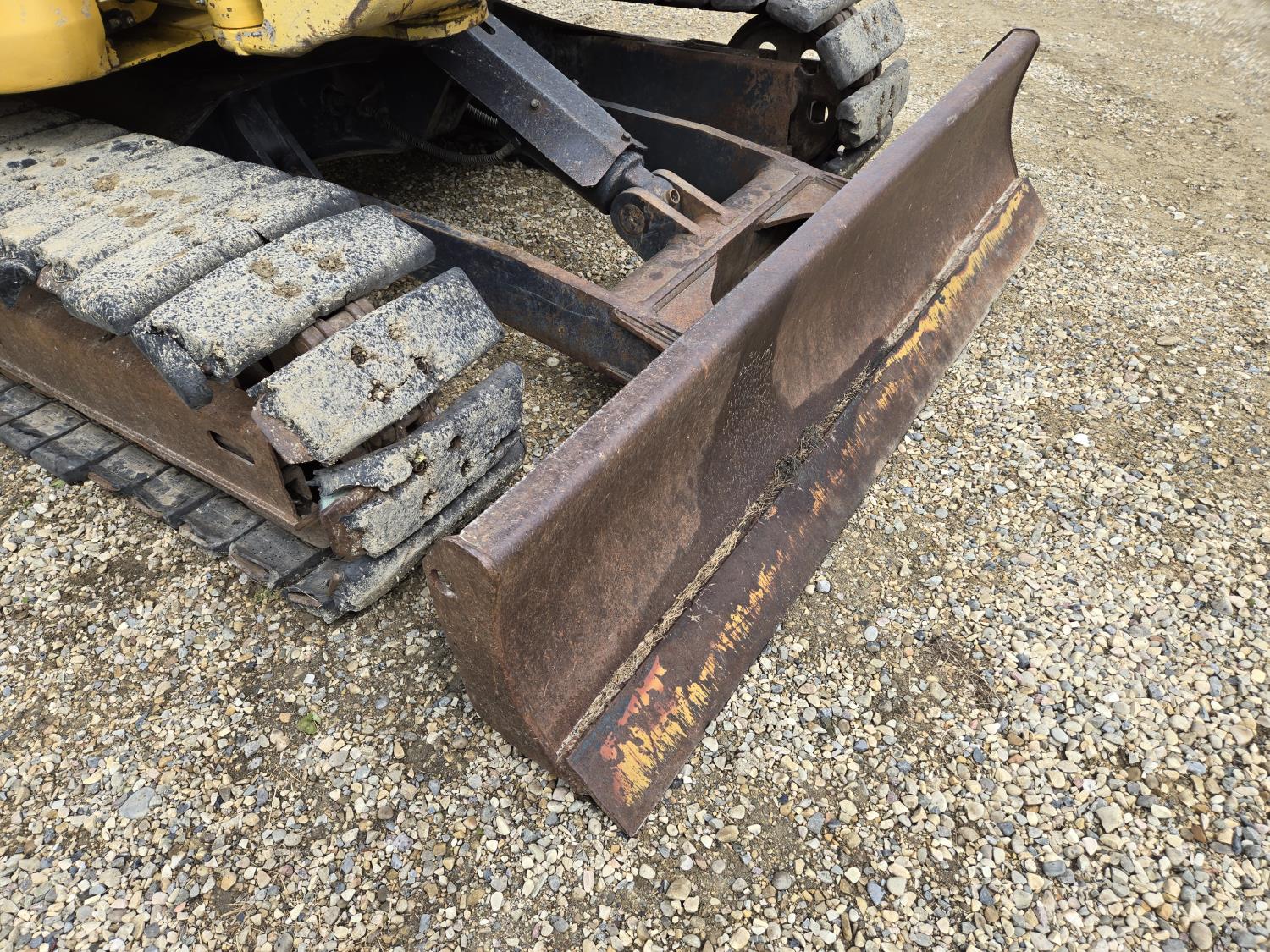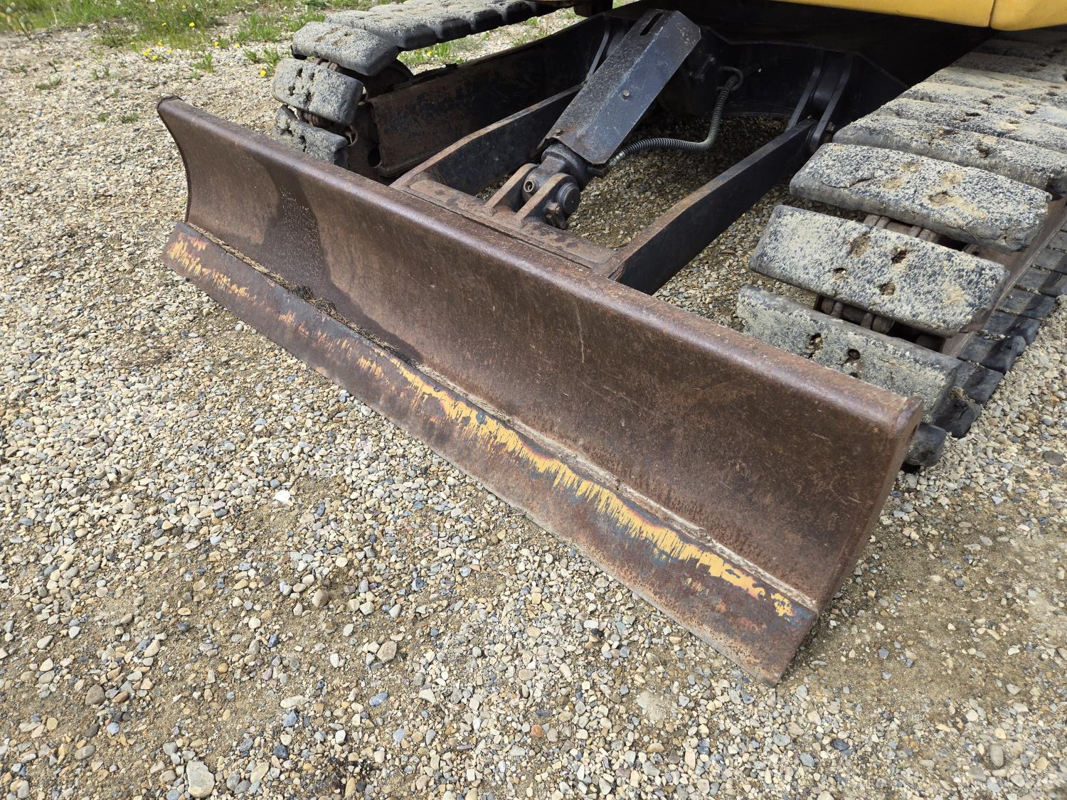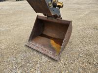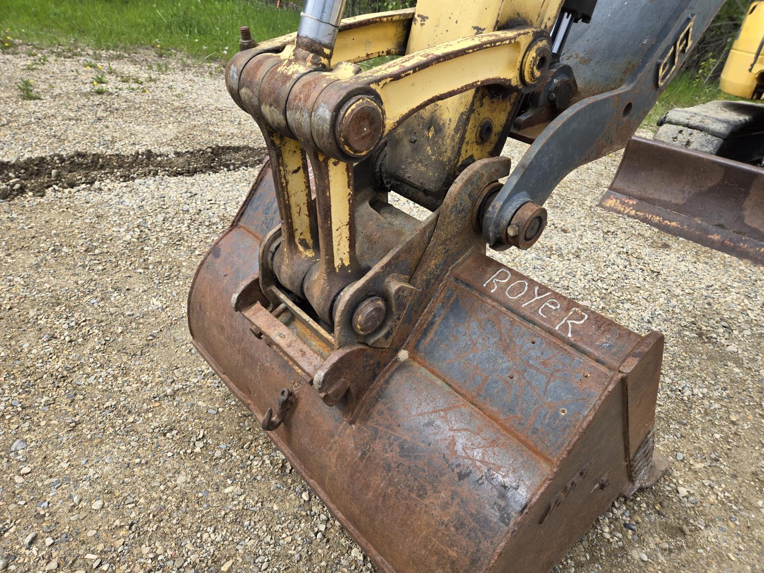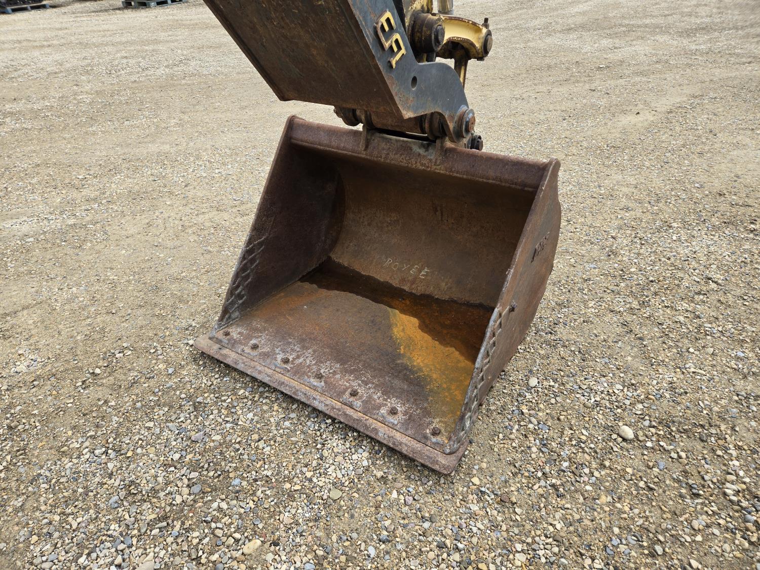 Enclosed cab, A/C, 42 inch cleanup bucket, manual coupler, hydraulic thumb, 1 auxiliary hydraulics, 89 inch stick, backfill blade, 18 inch track pads
