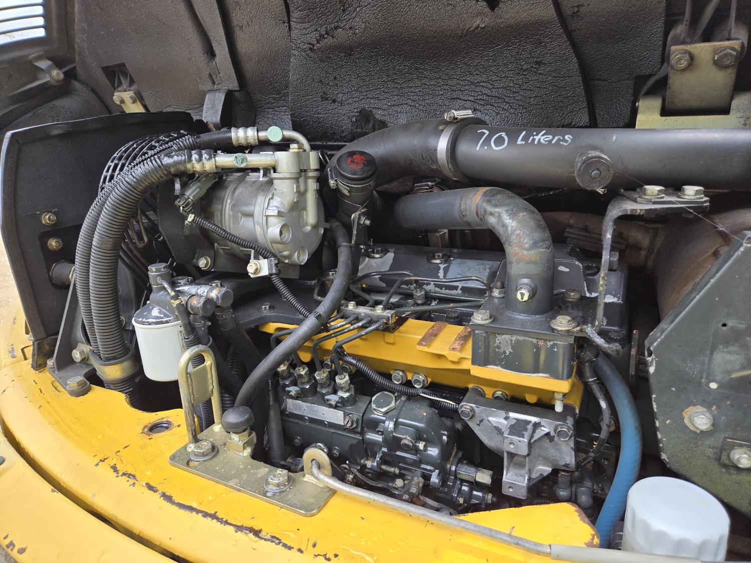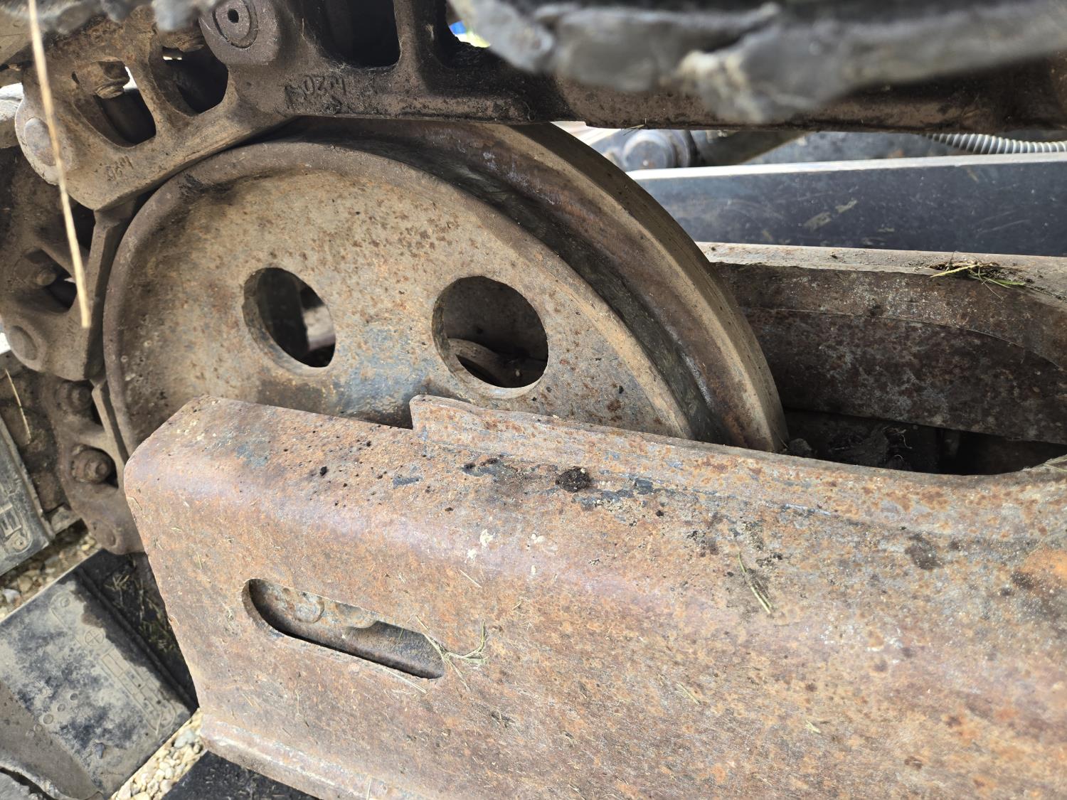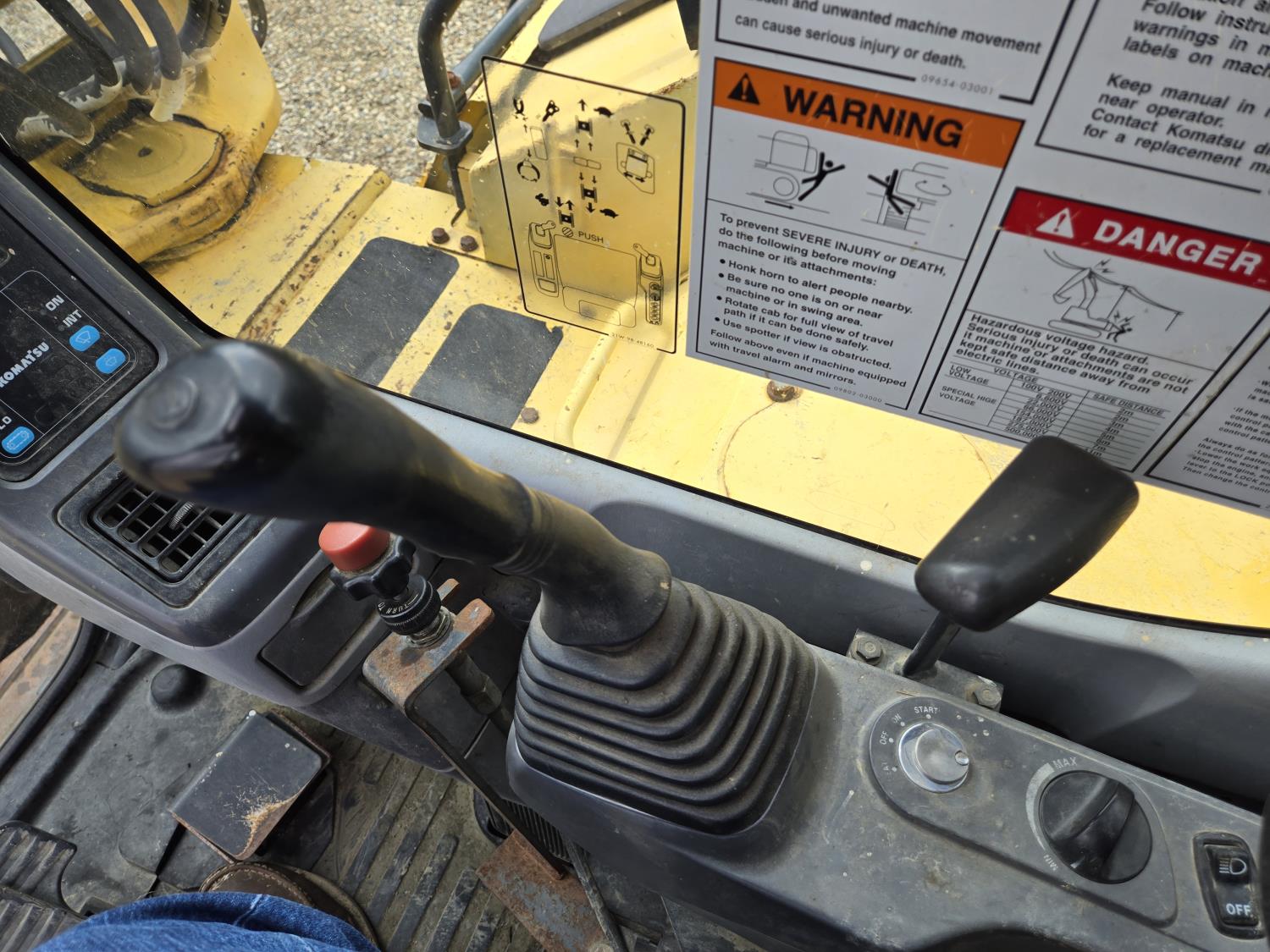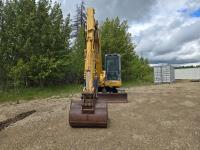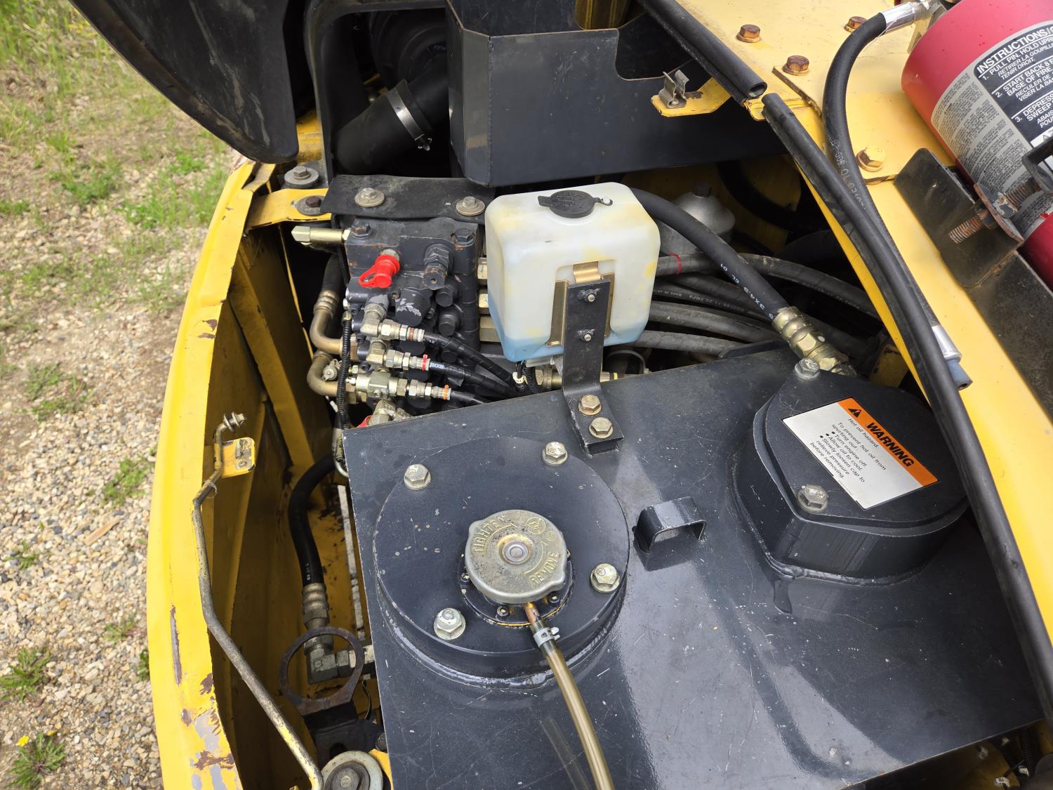 Enclosed cab, A/C, 42 inch cleanup bucket, manual coupler, hydraulic thumb, 1 auxiliary hydraulics, 89 inch stick, backfill blade, 18 inch track pads