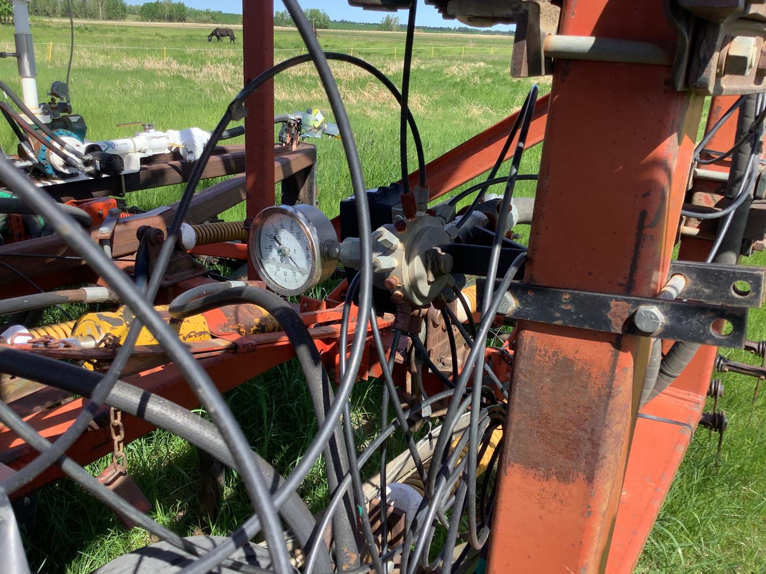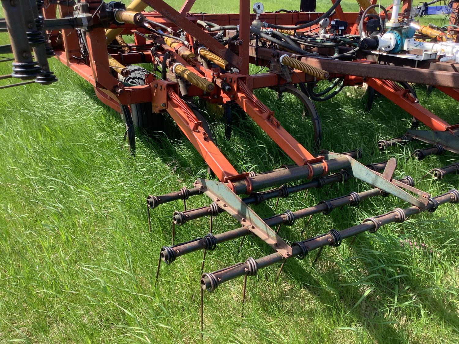 12 inch spacing, spring tooth harrows, dual arm 6 ft sections, Max Flow anhydrous ammonia applicator, rear tyow hitch