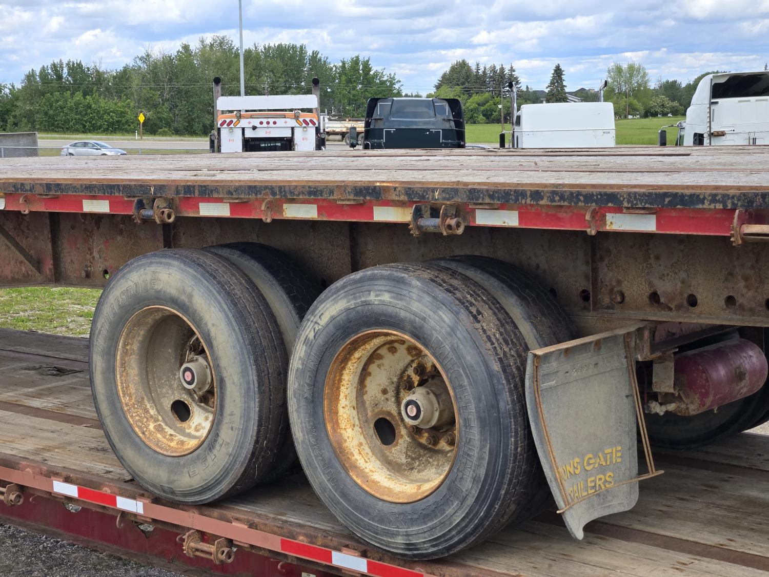 102 inch wide deck, wood deck, stake pockets, rub rails, cargo winches, air ride suspension, 11R22.5 tires