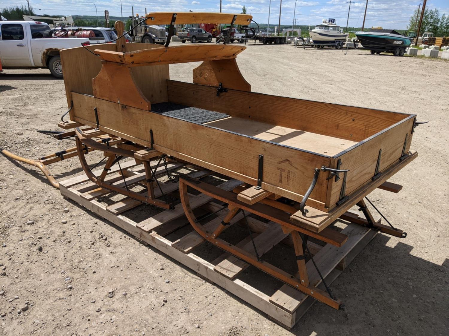 Poles and seats are interchangeable between this buggy and sleigh in this sale. These units were built in Oregon.