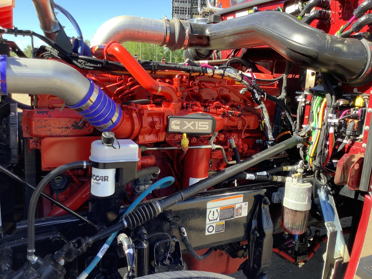 Cummins X15 605 HP engine, engine brake, Eaton 18-SP ULTRA SHIFT PLUS 18 speed auto shift transmission, 3.91 gear ratio, fridge, A/C, leather interior, air ride seats, 58" low roof sleeper with walk-in platinum interior, air ride cab, air ride suspension, 12,500 lb front axle, full lockers, 244 inch WB, super 40,000lb rear axles, disc brakes, dual stacks and air breathers, truck is only 9 months old. Comes with factory 5 year or 200,000 km warranty., all aluminum wheels, 11R24.5 front tires