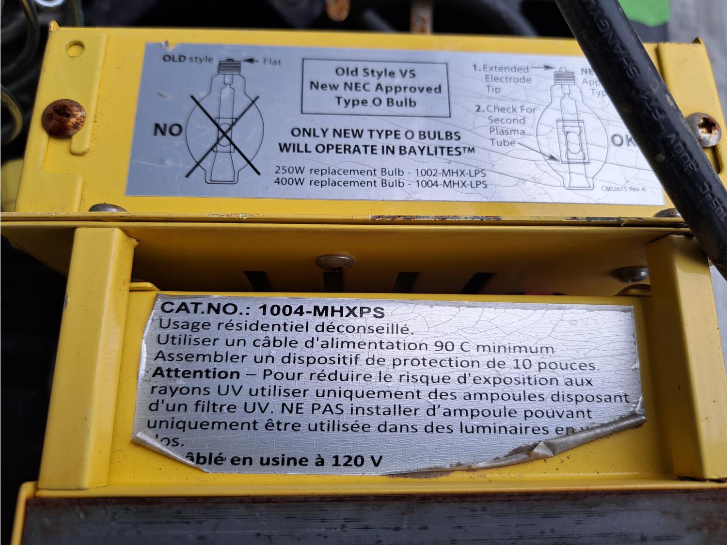 120 volt, 250 watt to 400 watt bulbs