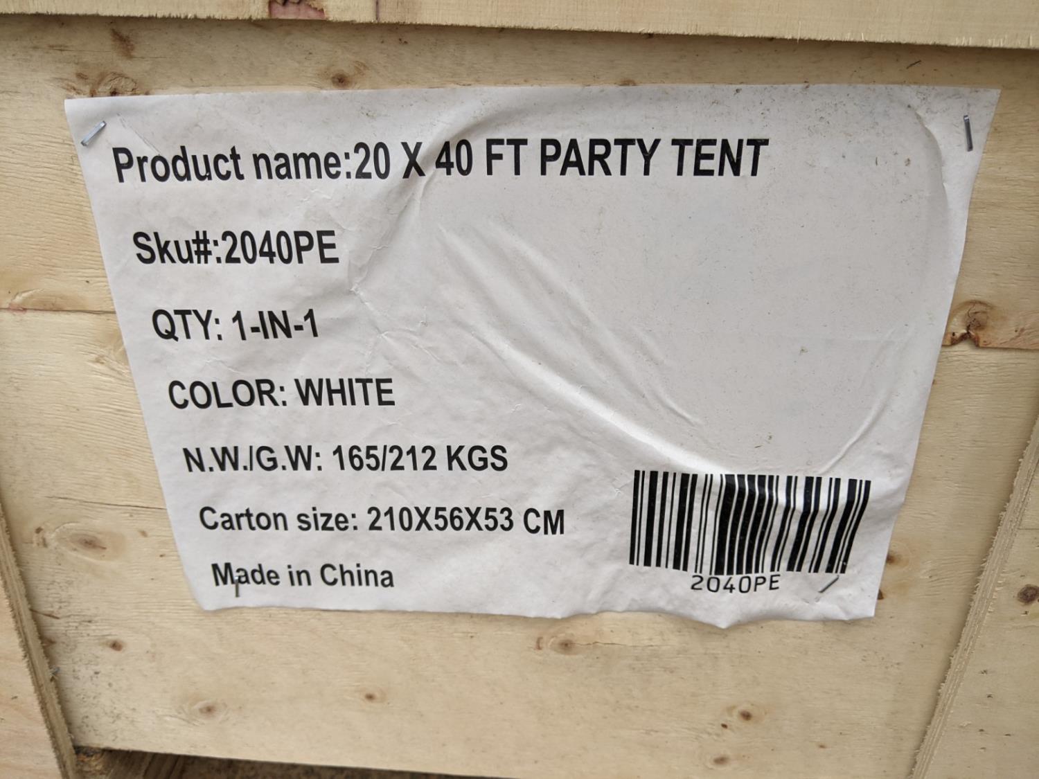 2075 20 Ft X 40 Ft Party Tent (Unused)