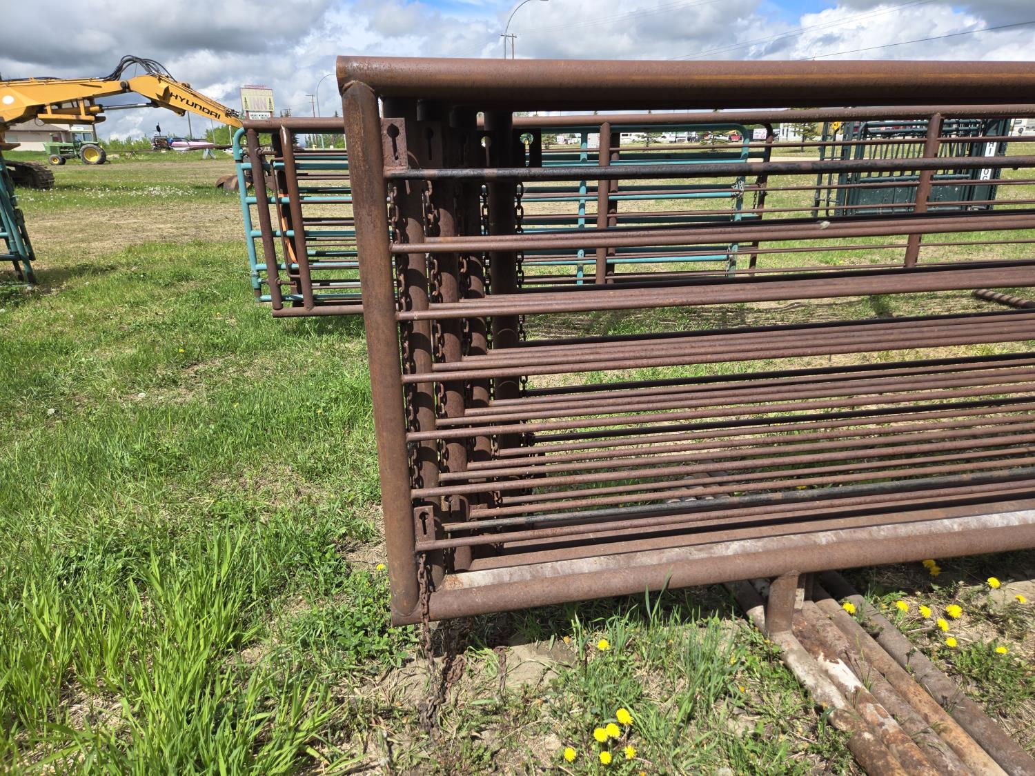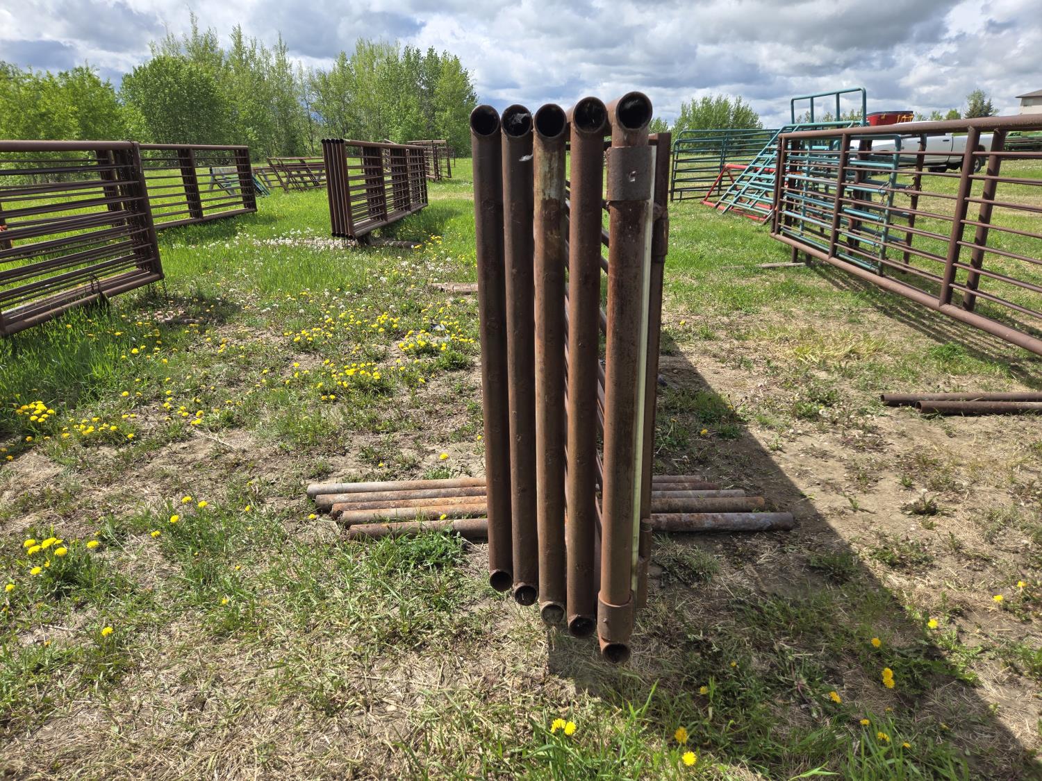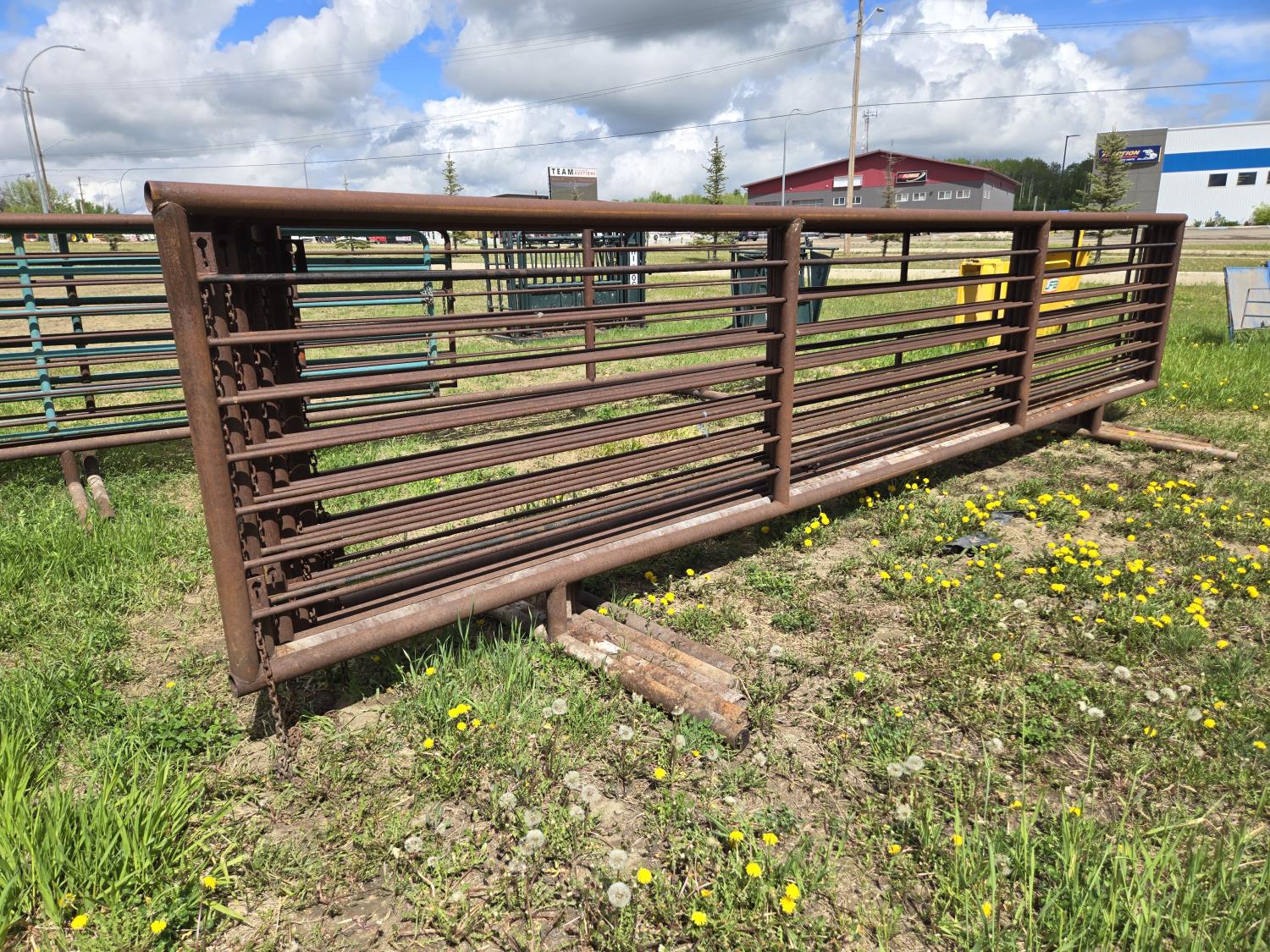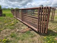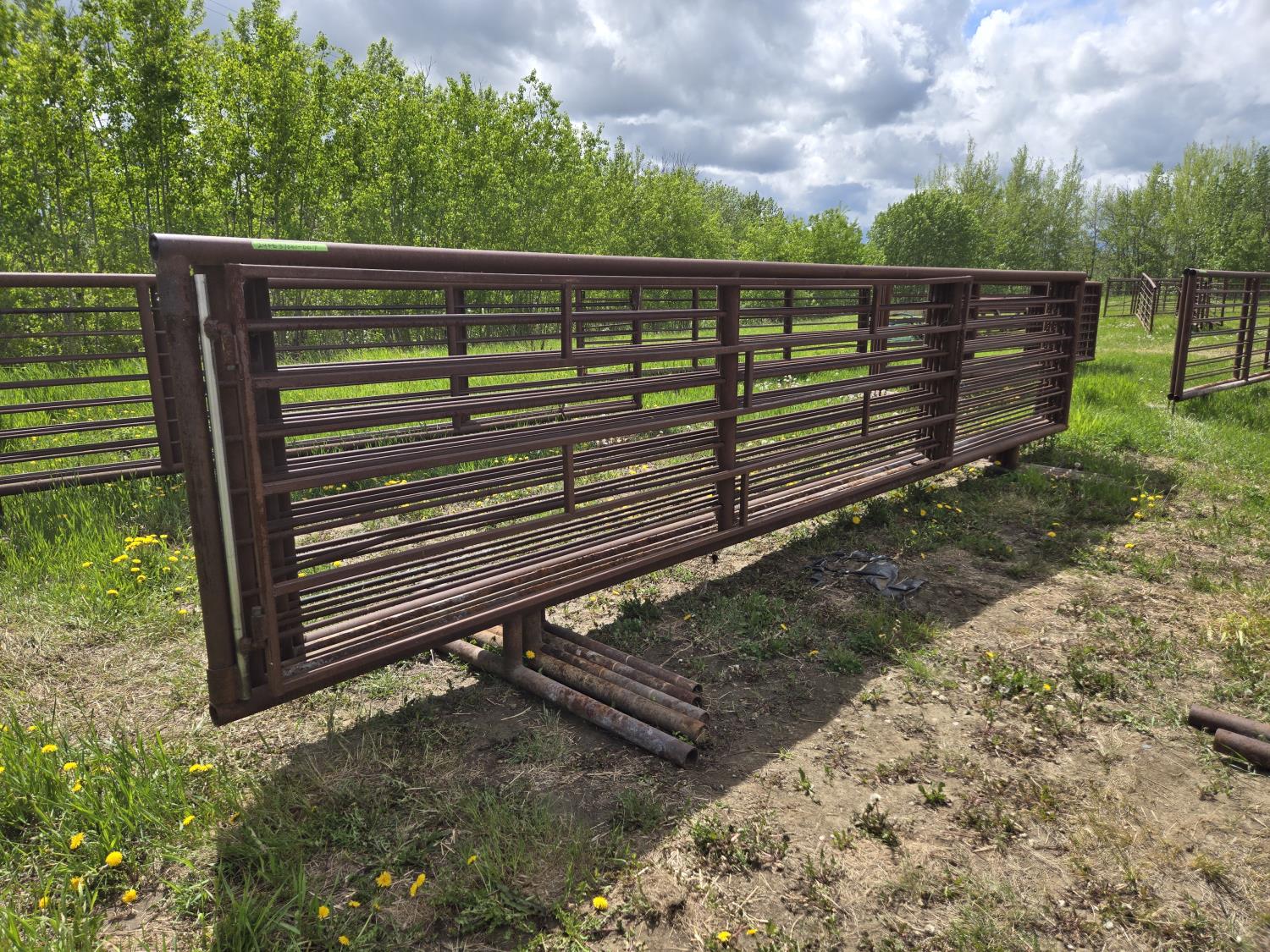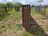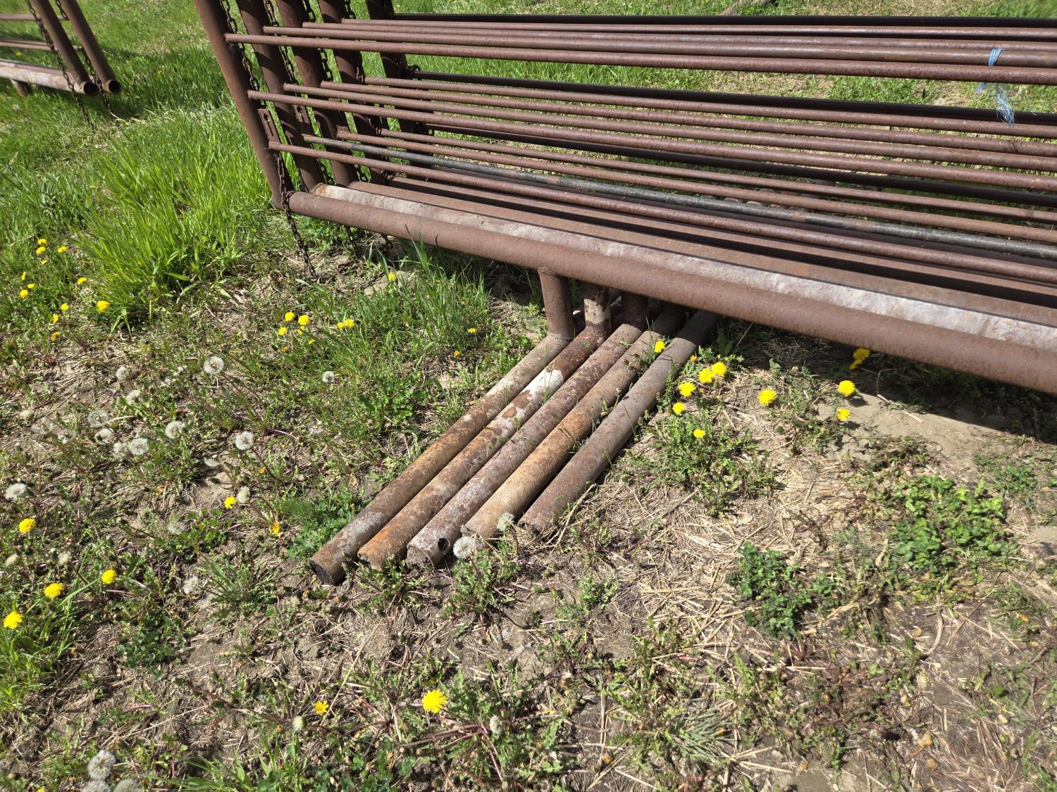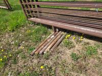 2-7/8 pipe frame, 7 sucker rod rails, (2) connector chains on one end, (1) has 15.5 ft gate