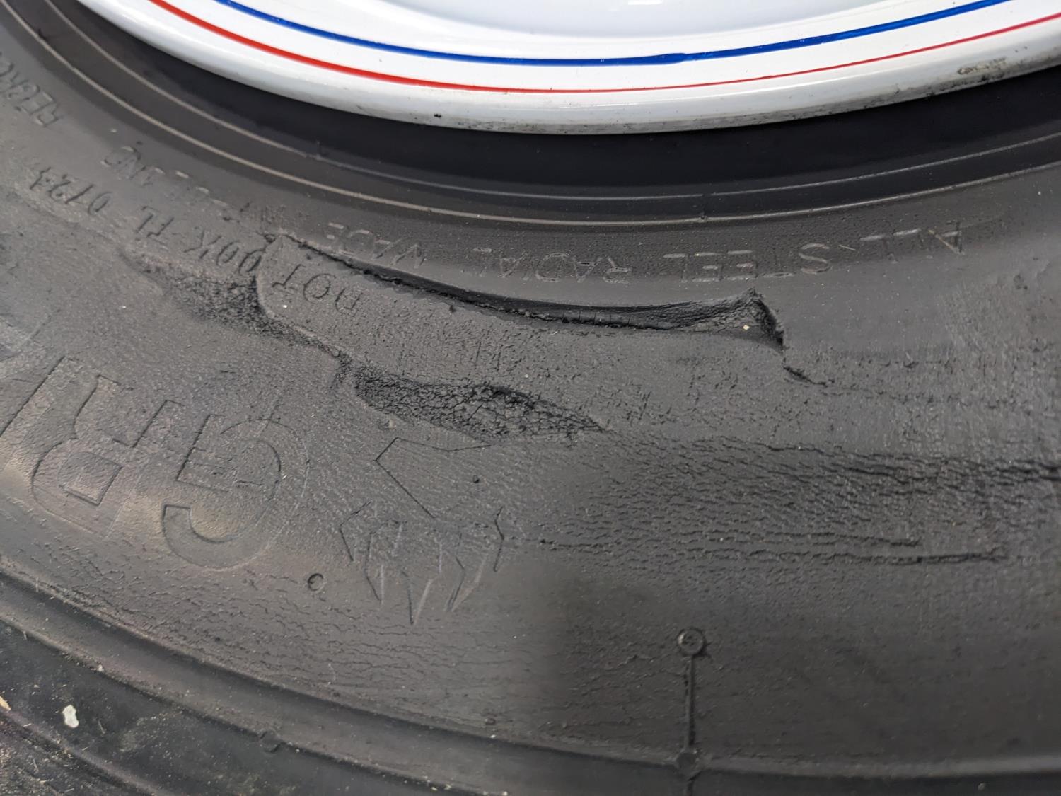 Condition may vary, personal inspection is advised. Gouge in side wall