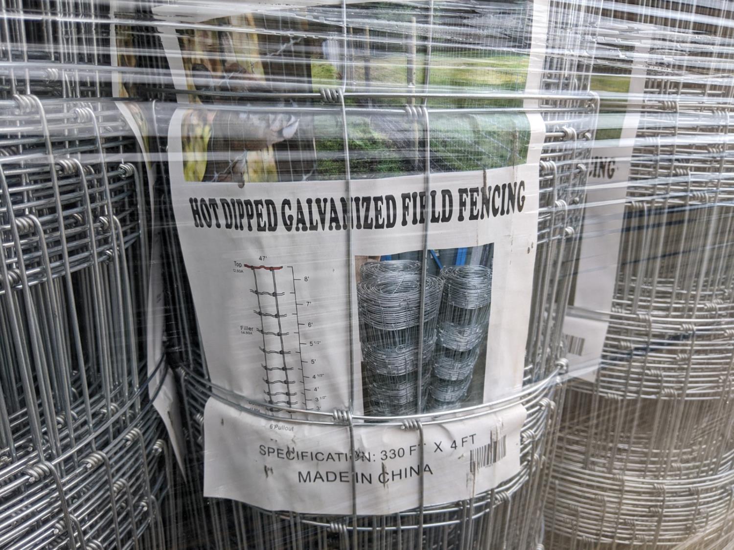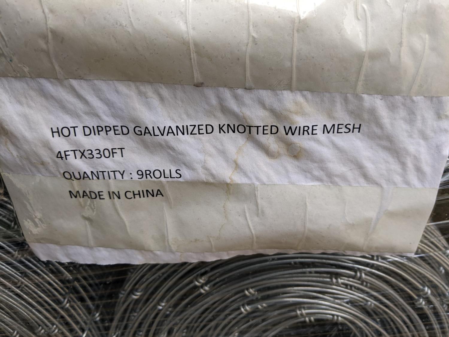 2073 (9) Rolls of 4 Ft H X 330 Ft L Hot Dipped Galvanized Field Fencing (Unused)