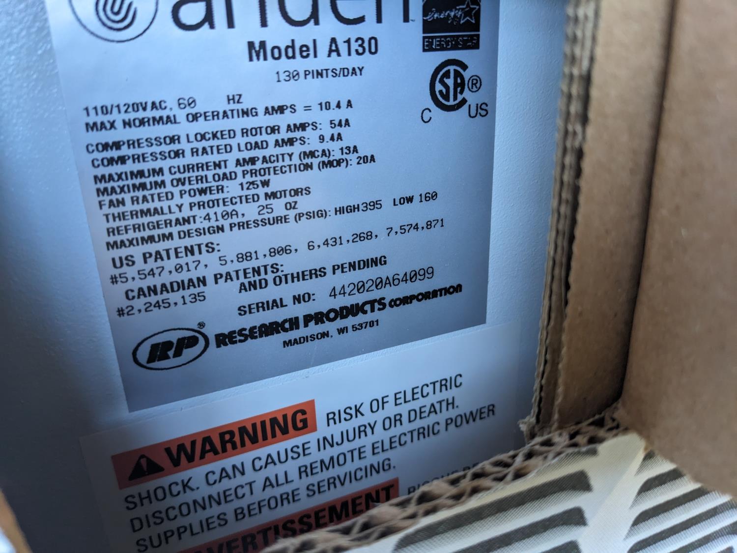 130pints/day, 110v, 125w