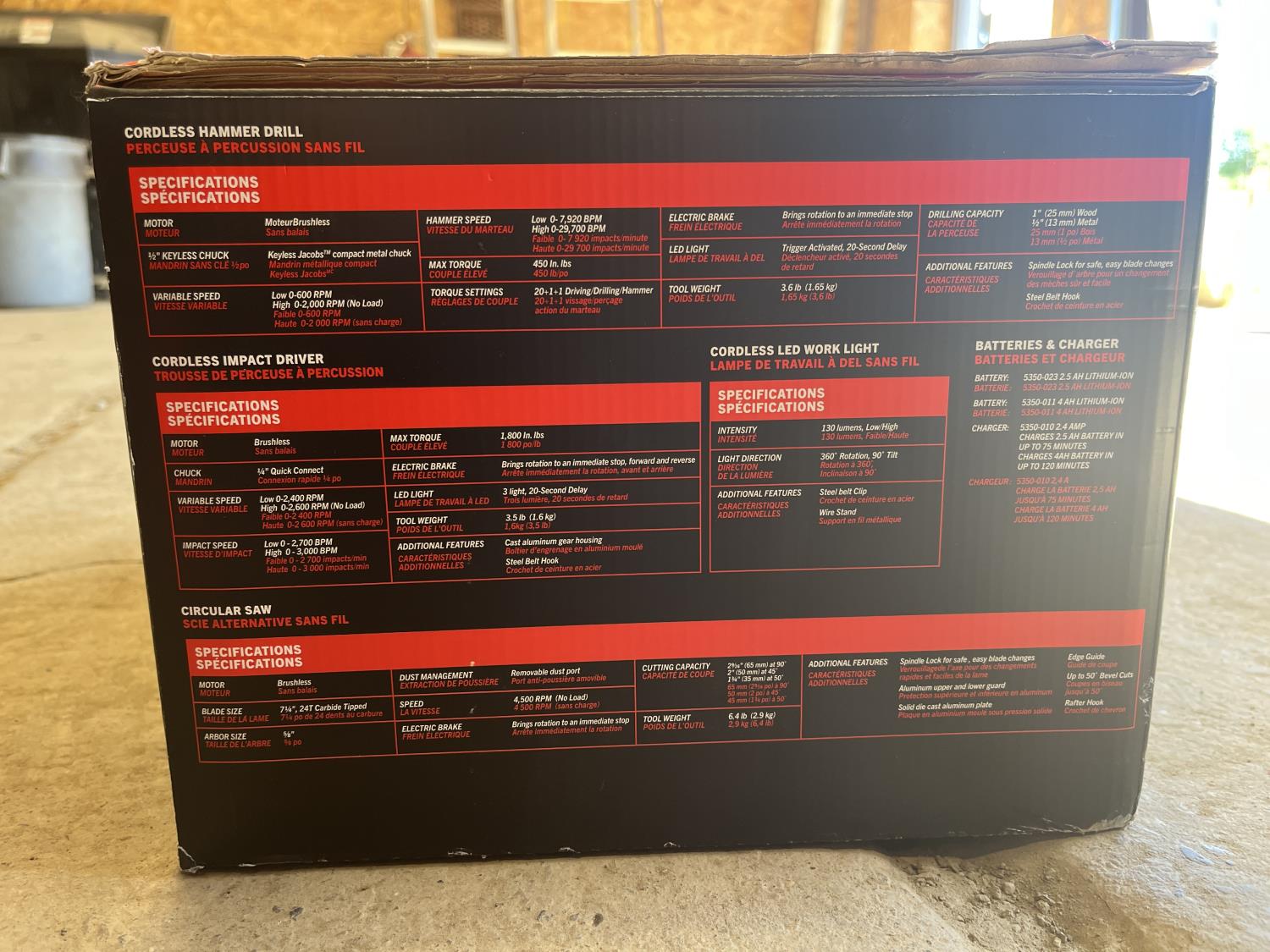 drill, impact, circular saw, work light, batteries and charger