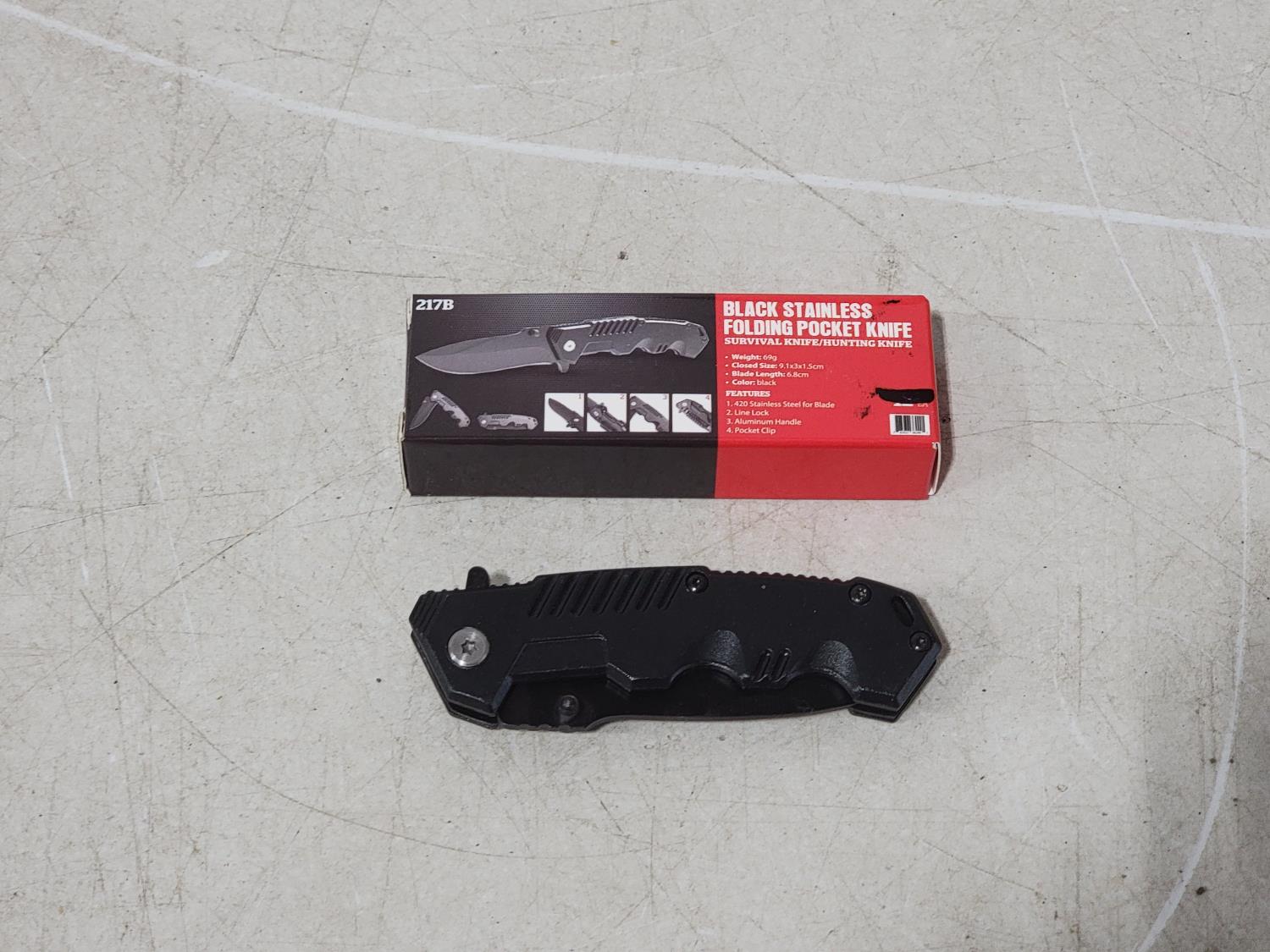1513 Black Stainless Steel Folding Pocket Knife (Unused)