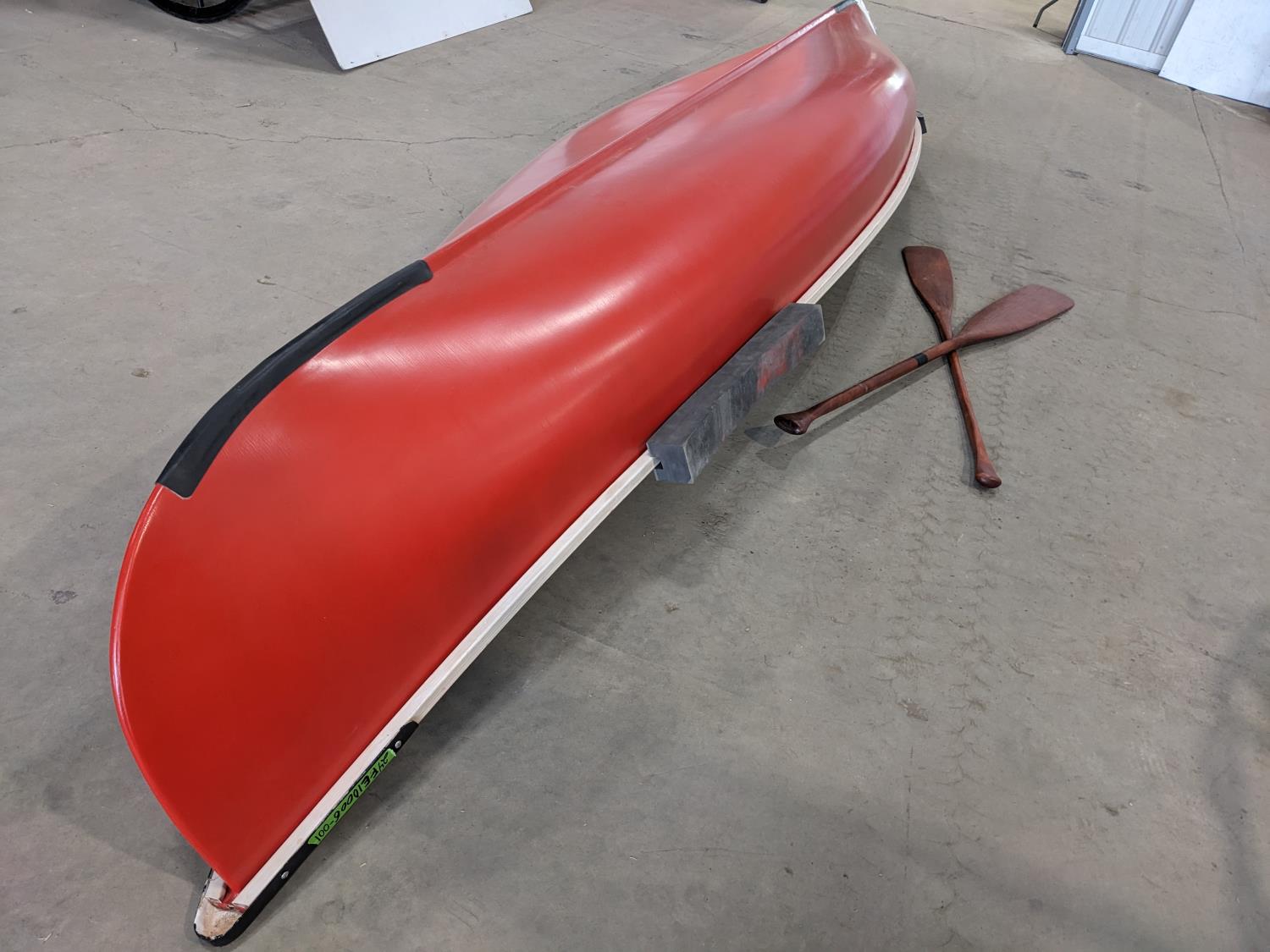 1477 Frontiersman 16 Ft Fiberglass Canoe with (2) Paddles