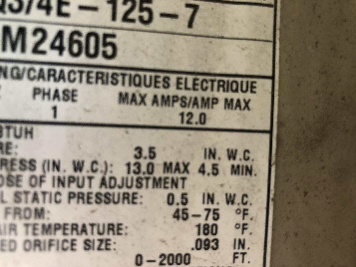 60 Hz, single phase, 120v, 125,000btu, 29 inch w x 26 inch d x 53 inch h