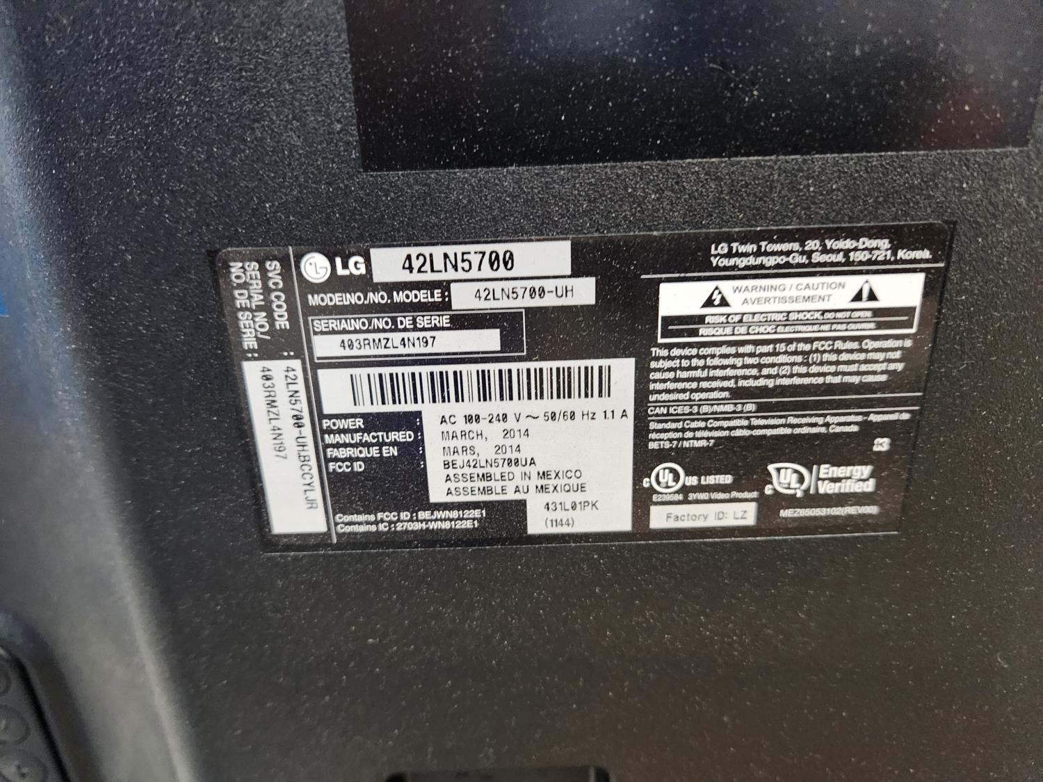 1327 Lg 42 Inch Smart TV