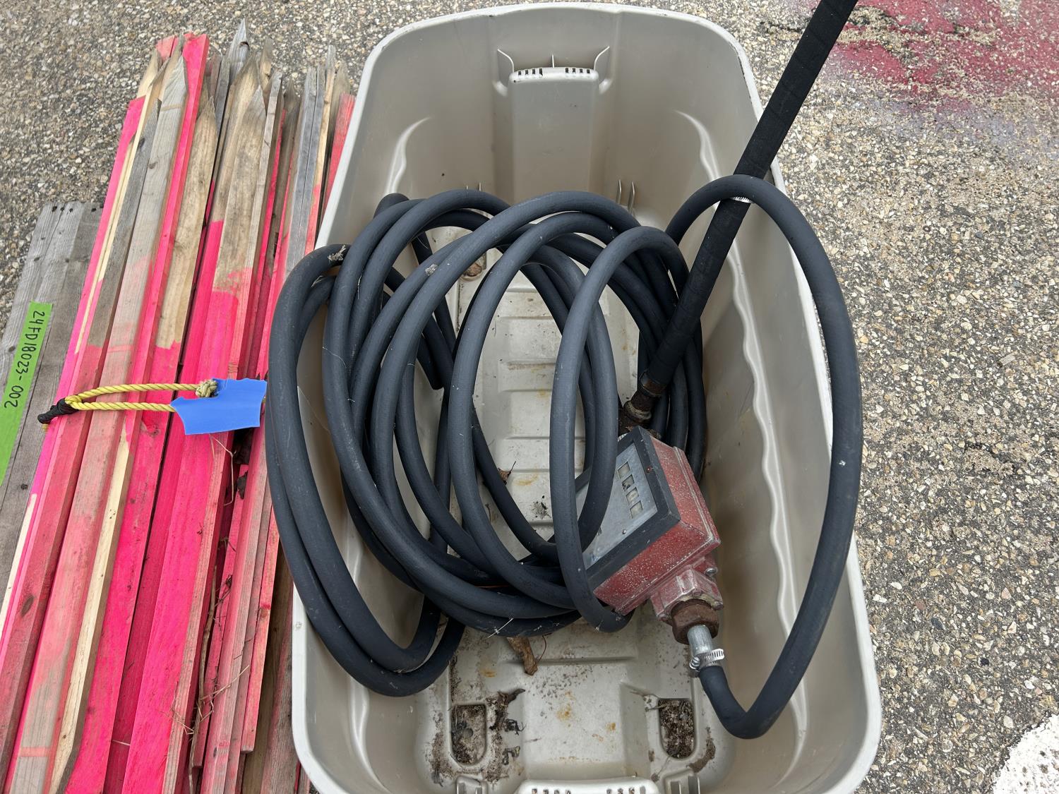 2161 Pallet with Fuel Hose, Flow Meter and Wooden Stakes