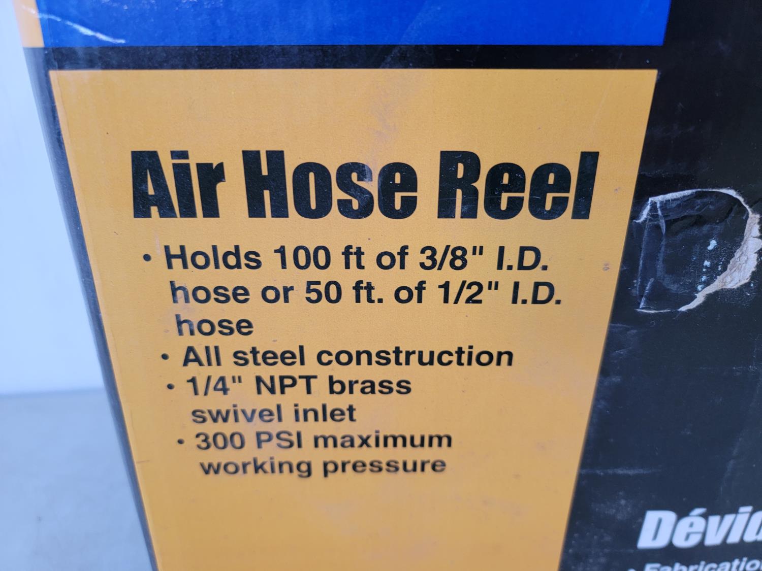 Holds 100 ft of 3/8 inch hose or 50 ft of 1/2 inch hose
