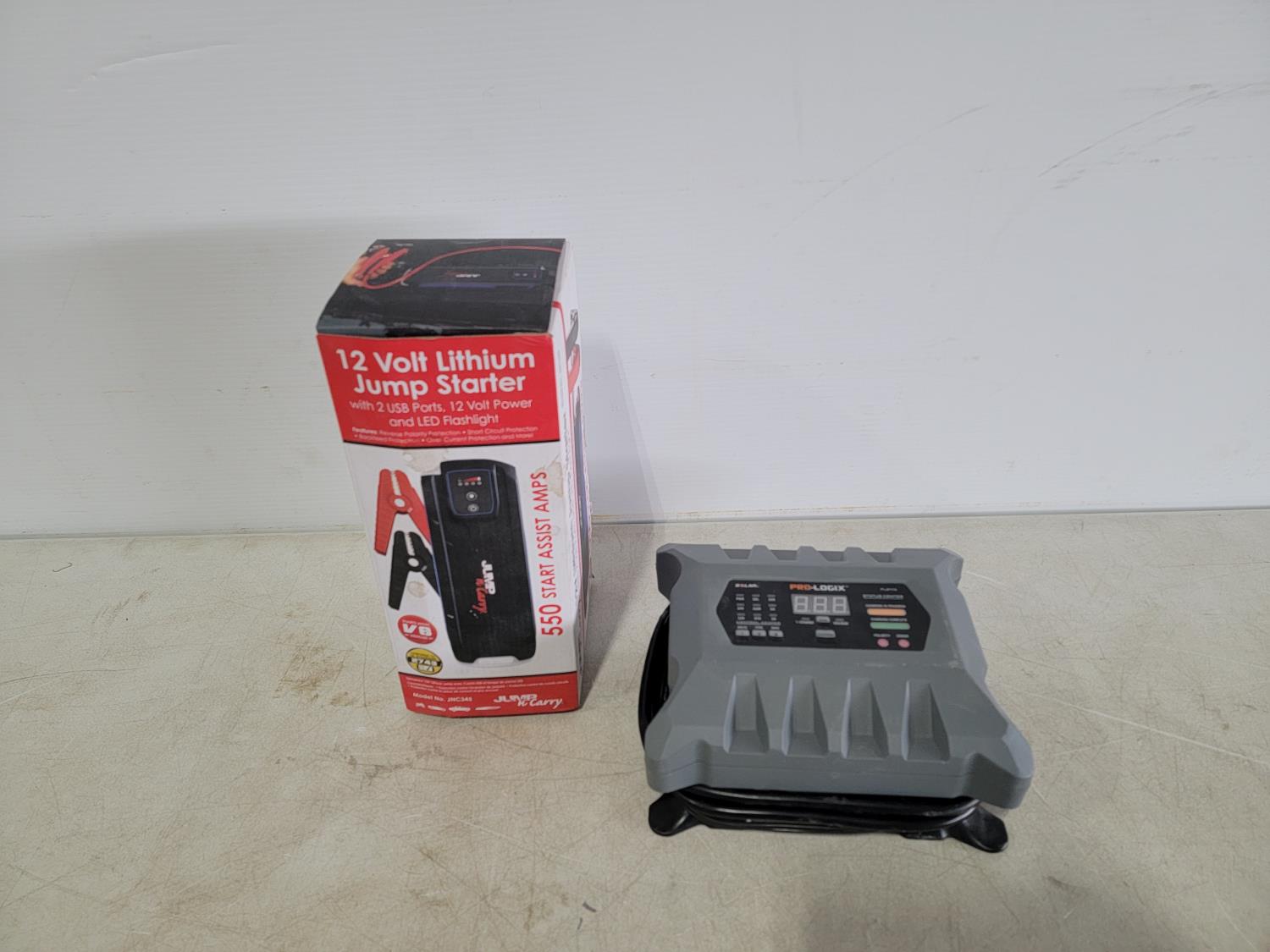 1487 Pro-Logix PL2410 Battery Charger and Jump N Carry 12 V Jump Starter