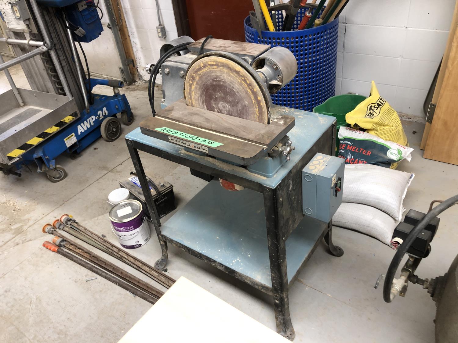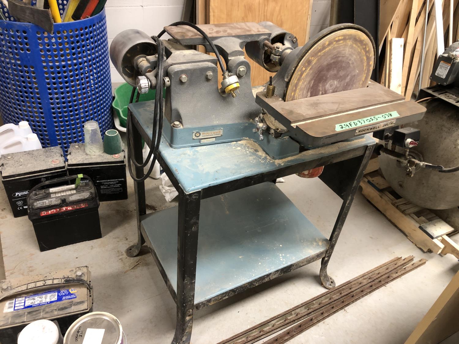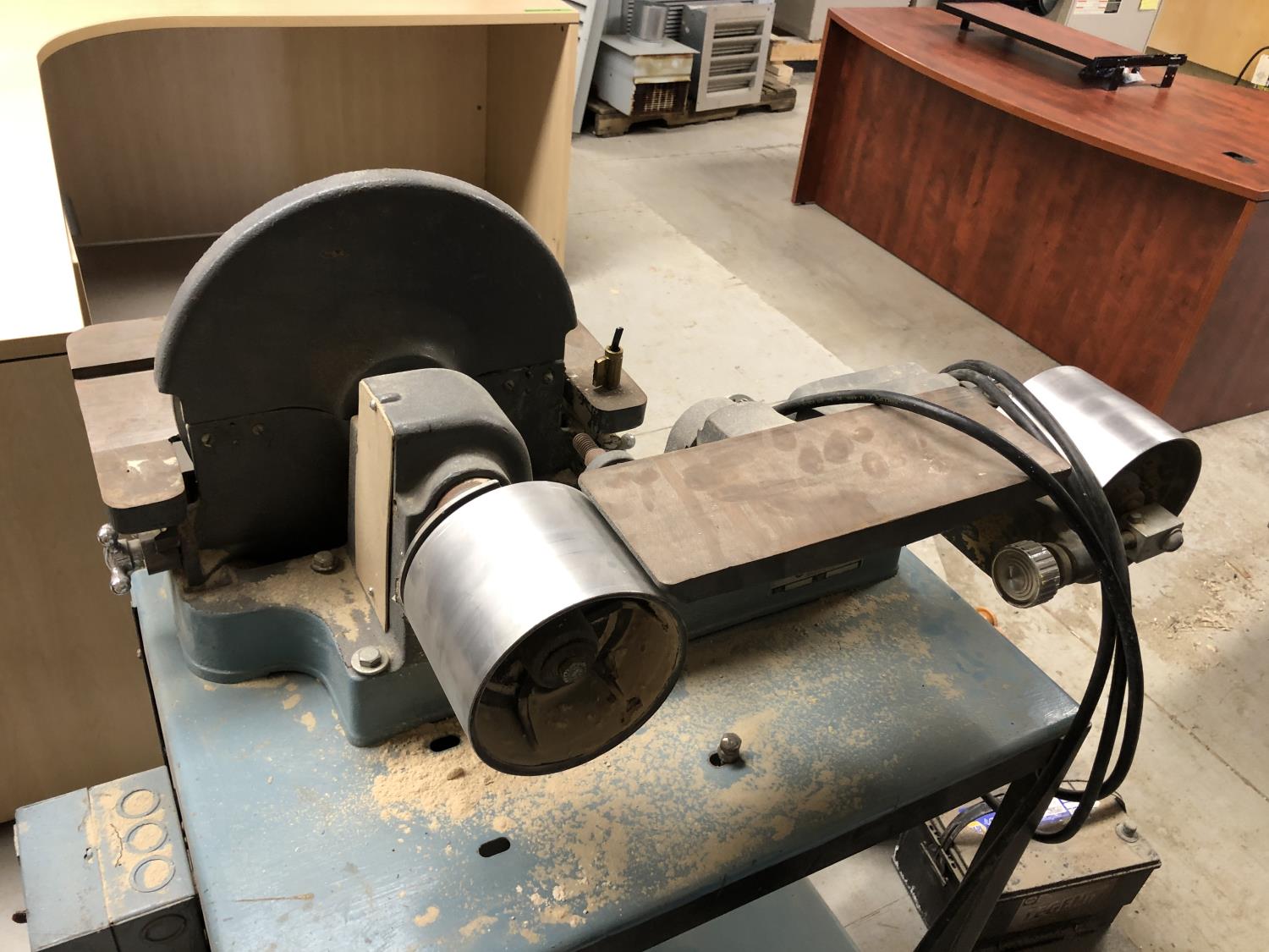12 inch disc, 4 inch x 52-1/2 inch belt sander, 33 inch w x 26 inch d x 43 inch h