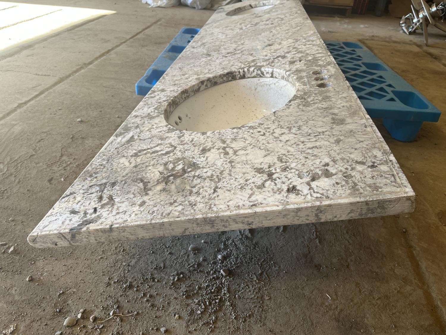 102 inch x 23 inch counter, 14 inch x 16 inch sinks
