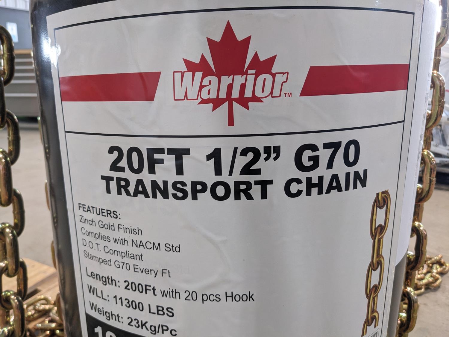 1405 Warrior 20 Ft X 1/28 Inch G70 Transport Chain with Hooks (Unused)
