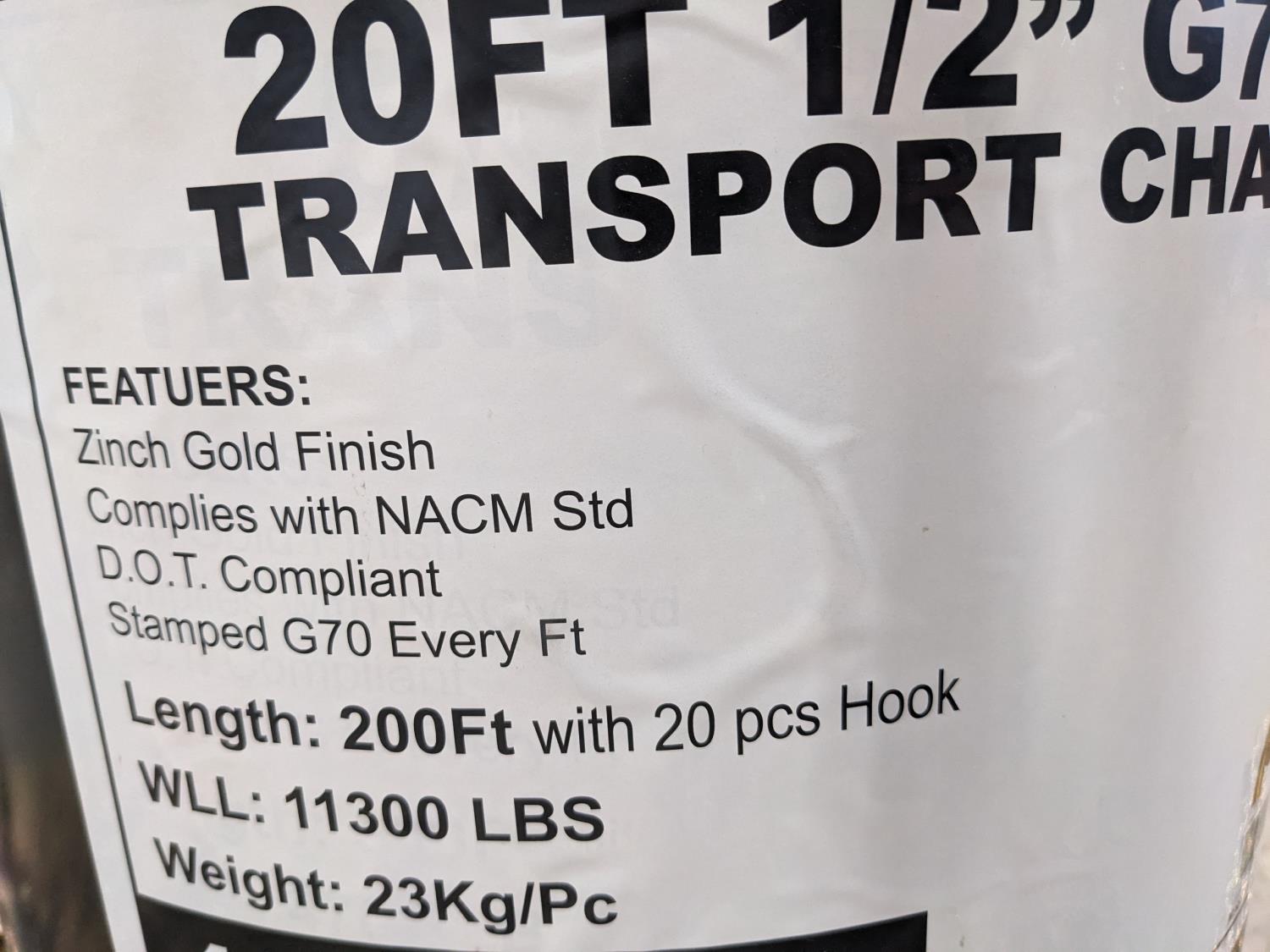 1408 Warrior 20 Ft X 1/28 Inch G70 Transport Chain with Hooks (Unused)