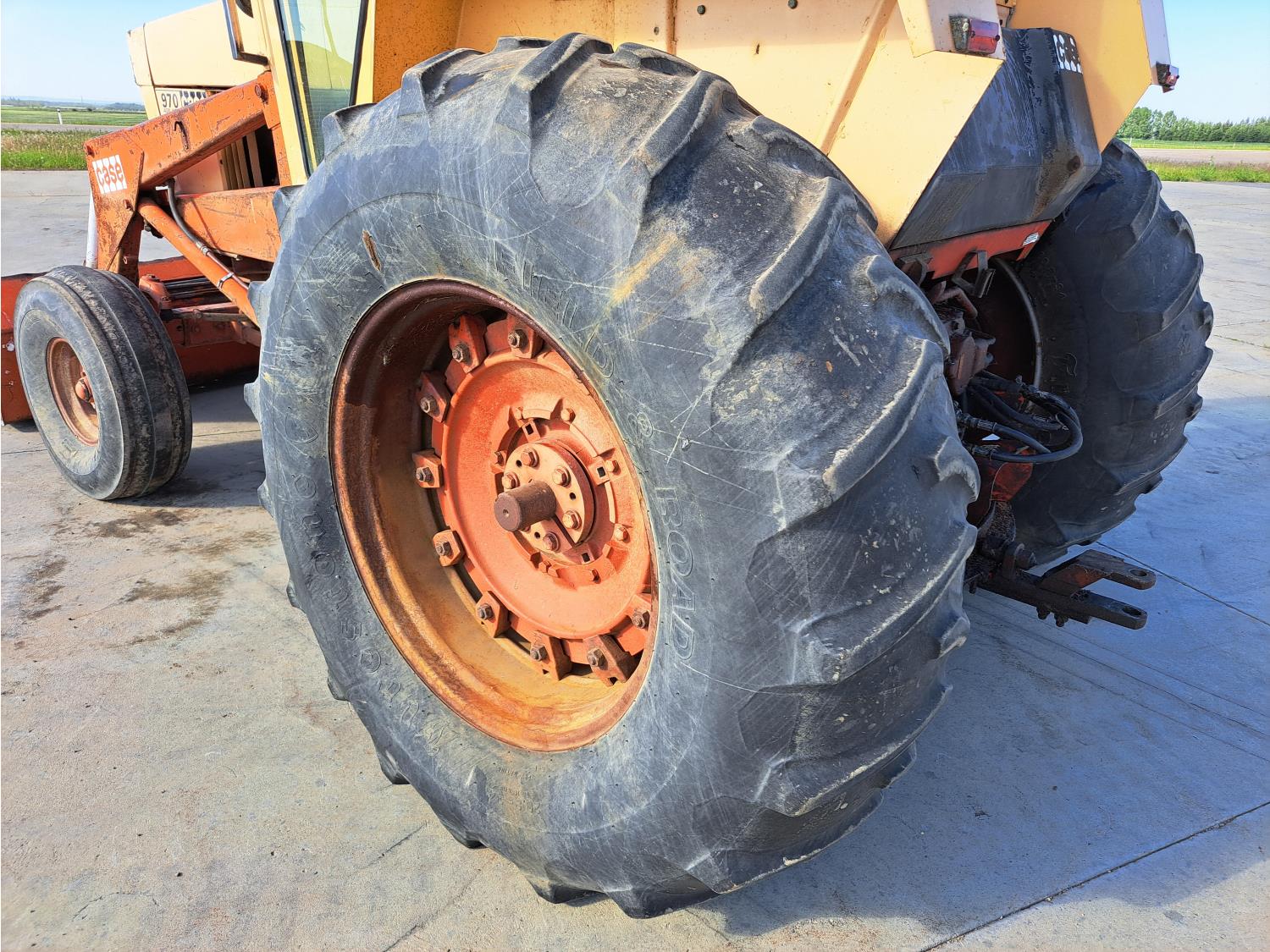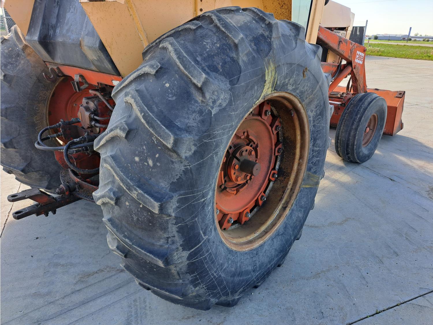 case 6.6 L 6 cylinder 95 HP, diesel engine, 86 PTO HP, 8 speed manual transmission, cab, radio, 540 PTO, 2 rear hydraulic outlets, 11.00-16 front tires, 20.8-34 rear tires