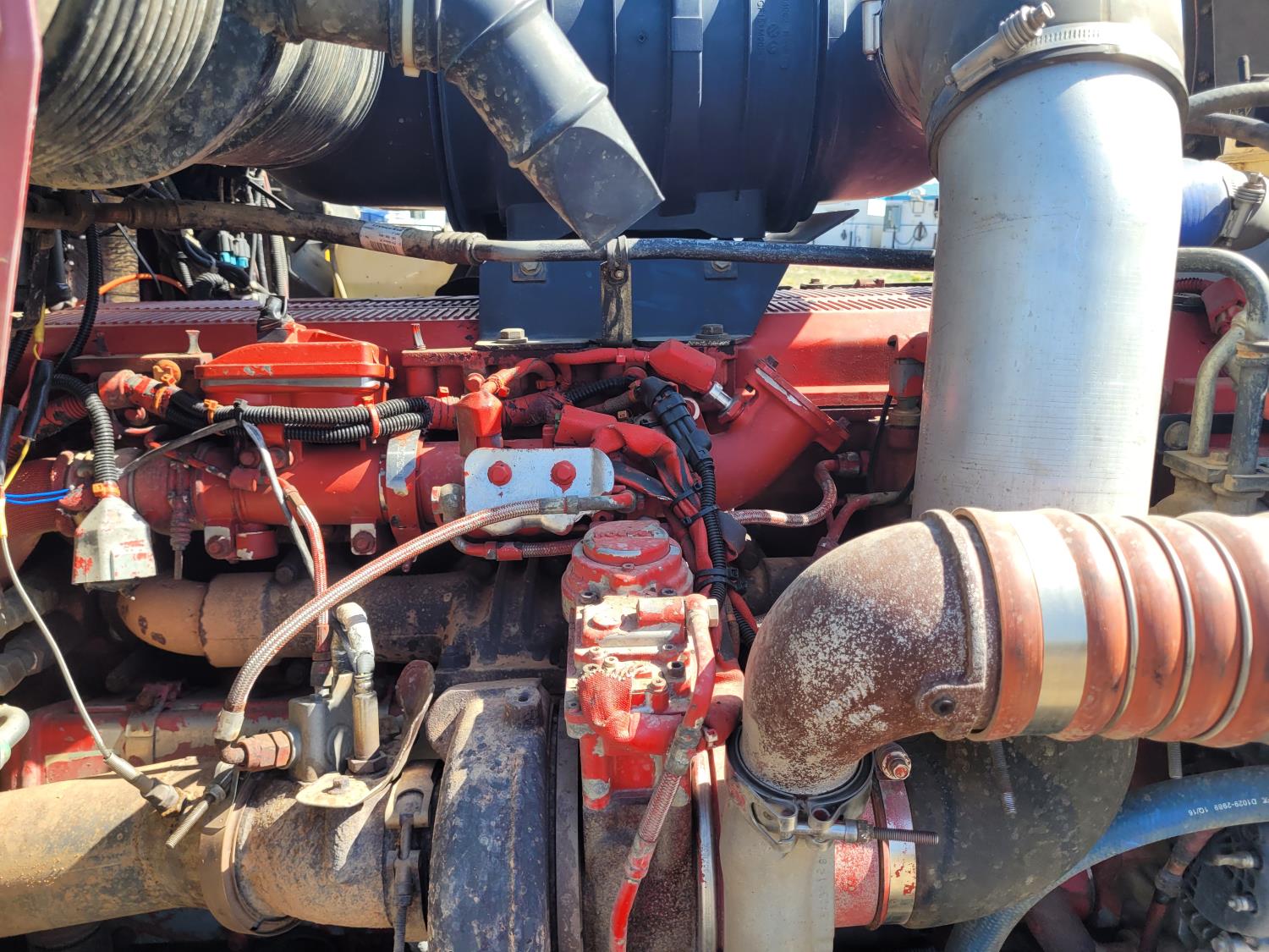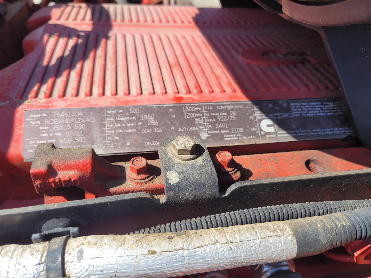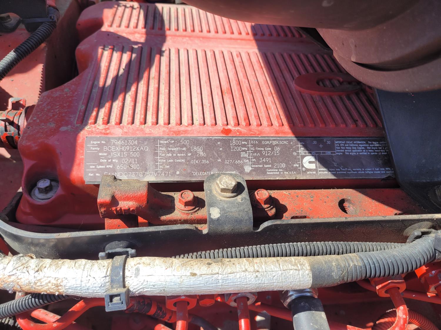 Cummins ISX15-500 engine, engine brake, Eaton FULLER 18 speed manual transmission, mid rise sleeper, air ride driver seat, aluminum moose bumper, aluminum headache rack, air ride cab, air scales, PTO pump, 3 way diff locks, all aluminum wheels, 11R24.5 front tires, 11R24.5 rear tires