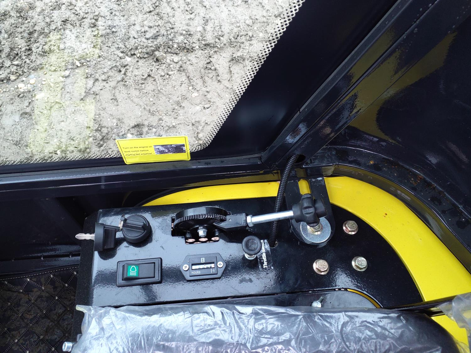 Enclosed cab, gas engine, 17 inch dig bucket, manual coupler, manual thumb, 28 inch stick, 7 inch rubber tracks