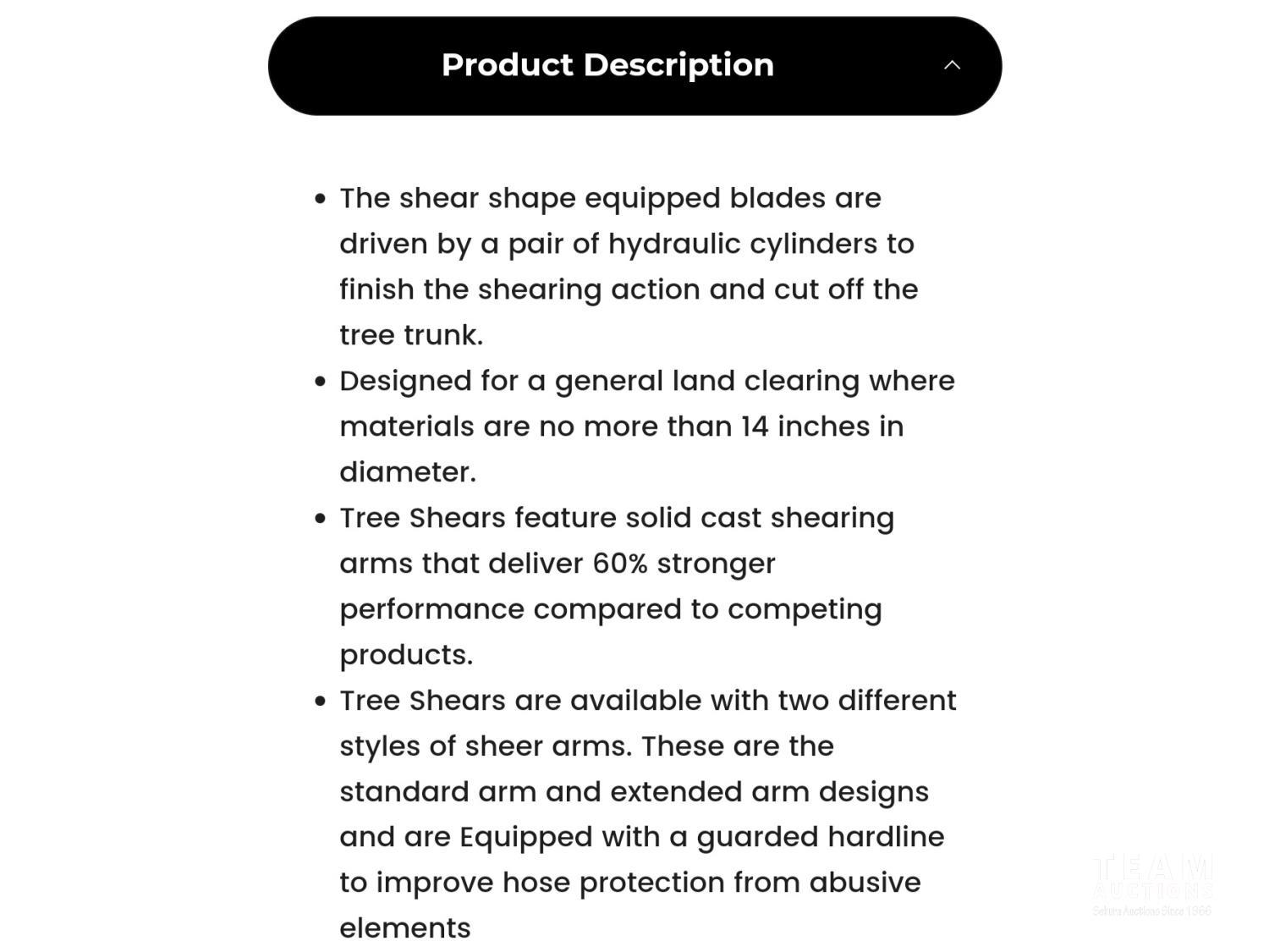 shears trees up to 14 inches diameter, 33.9 inches long x 74.9 inches wide x 49.5 inches tall, 1810 lb