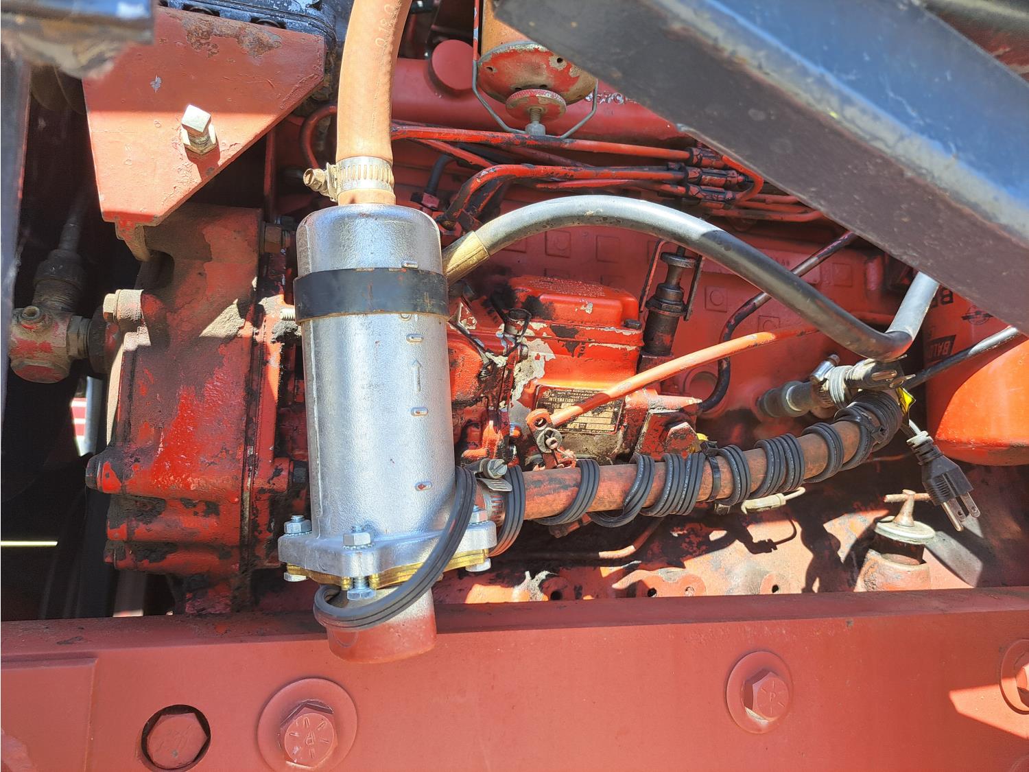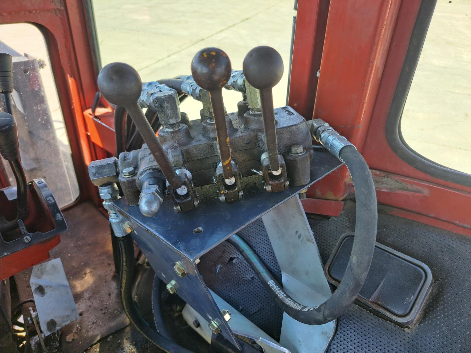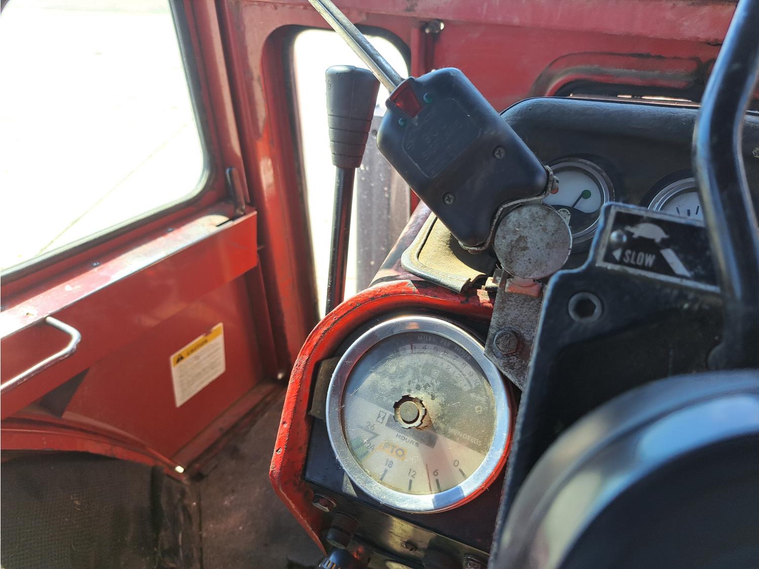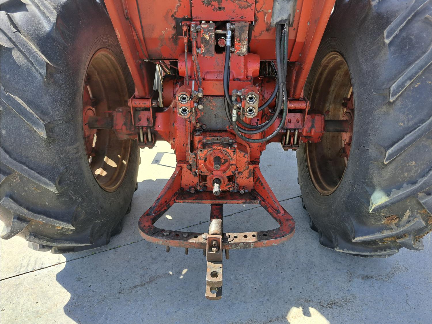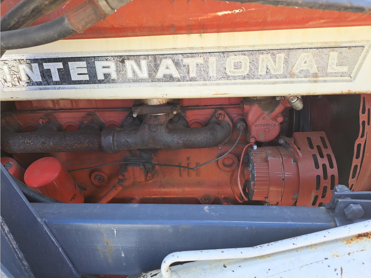 Allied 784 loader, 84 inch bucket, grapple, International HARVESTER 5.9 L 6 cylinder 88 HP, diesel engine, 85 PTO HP, 8 speed partial power shift transmission, cab, 540/1000 PTO, 2 rear hydraulic outlets, 12.5L-16 front tires, 18.4/15-34 rear tires