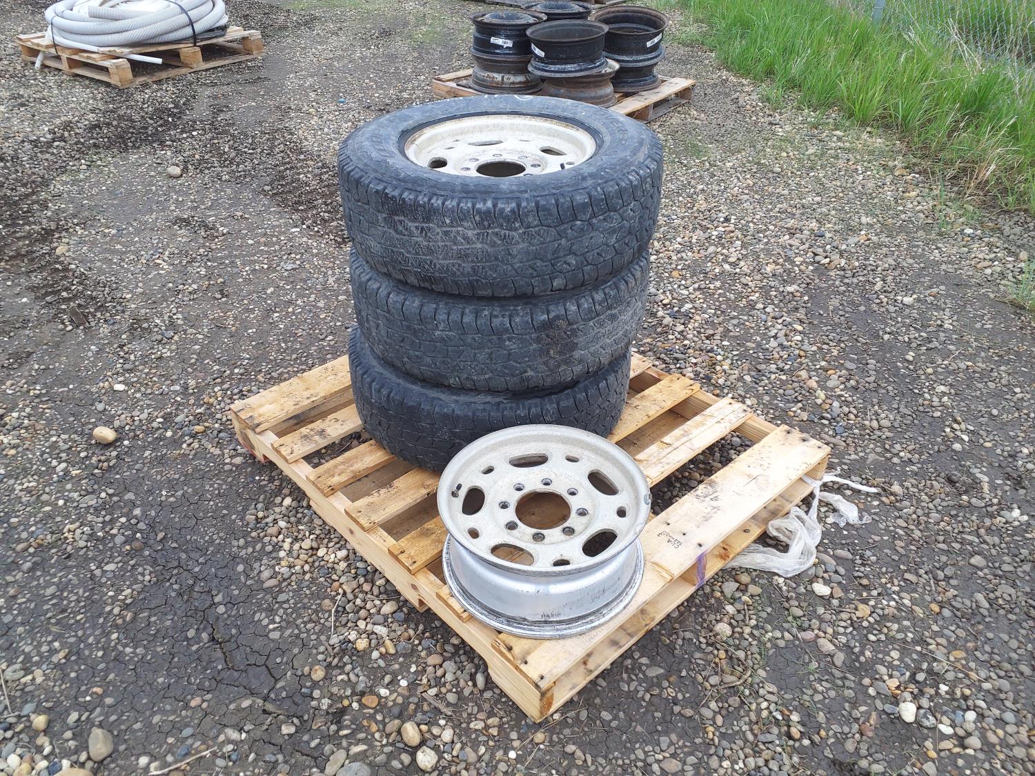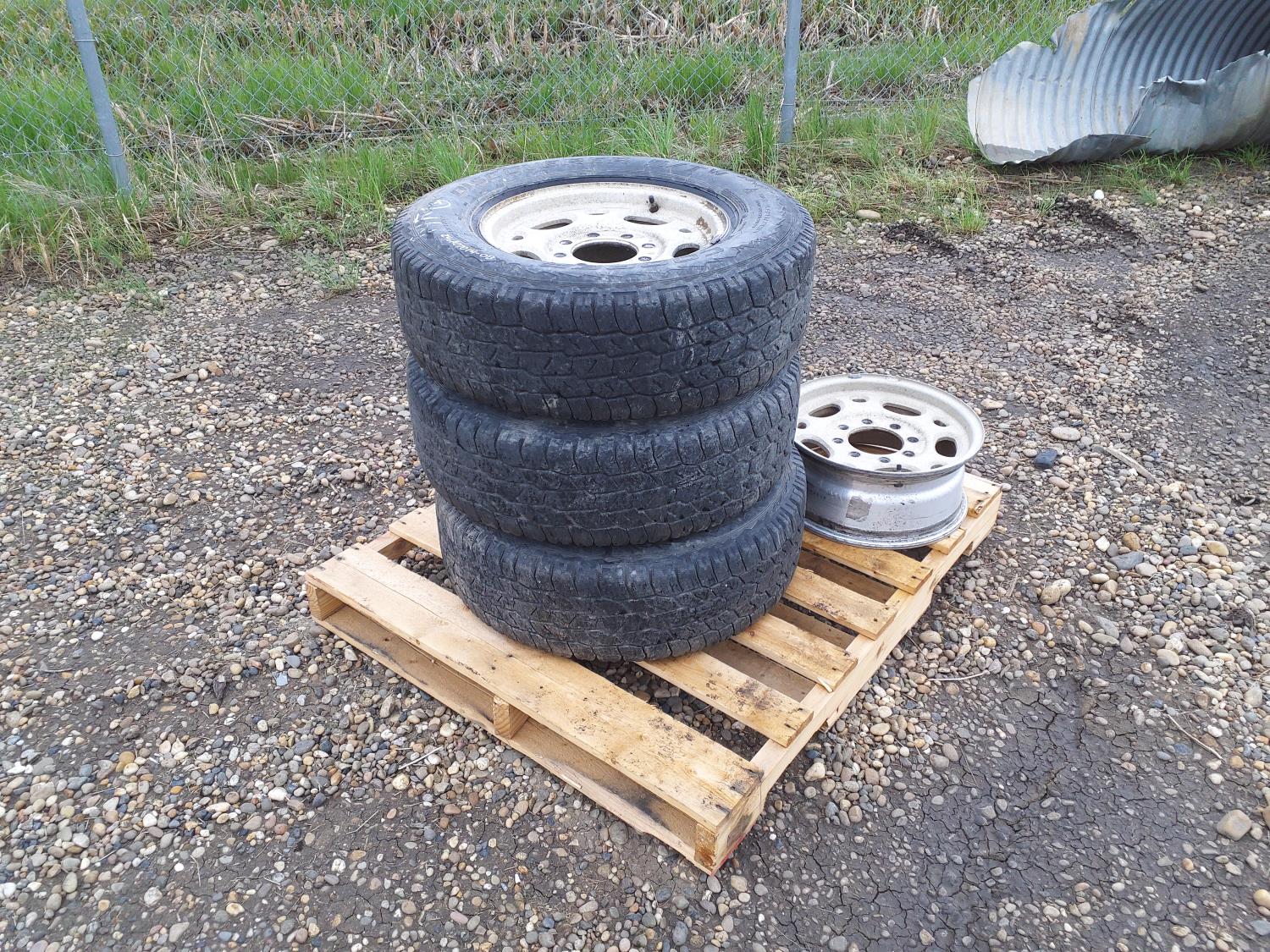 699 (3) Cooper 245/75R16 Cooper Tires with Rims (1) Rim