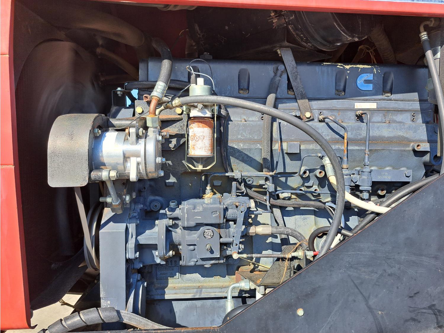 Cummins 10.0 L 6 cylinder 300 HP, diesel engine, 12 speed power shift transmission, cab, A/C, radio, air ride seat, 4 rear hydraulic outlets, track weights, 20.8-38 tires