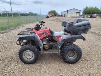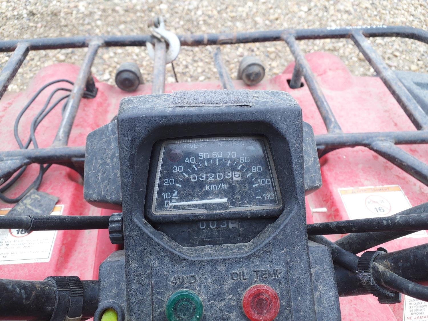 600 cc engine, automatic transmission, Hi/Lo range, reverse, hitch, front and rear racks, buddy seat, tool box, front winch, 25X8-12 front tires, 25X10-10 rear tires