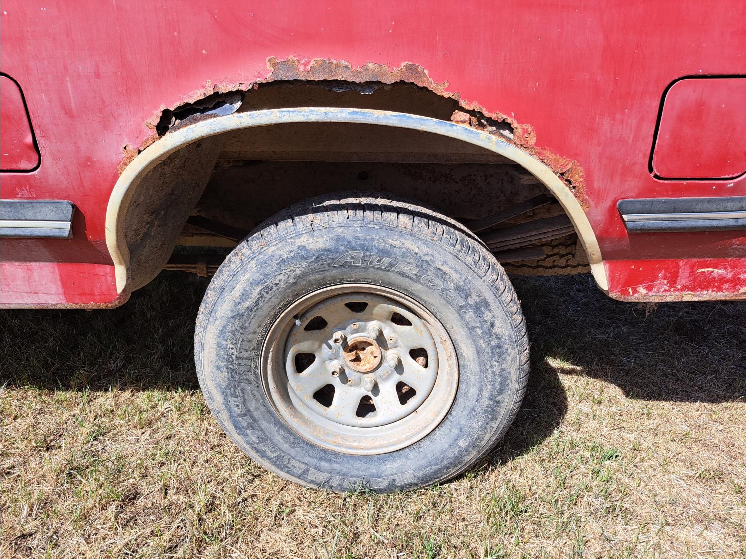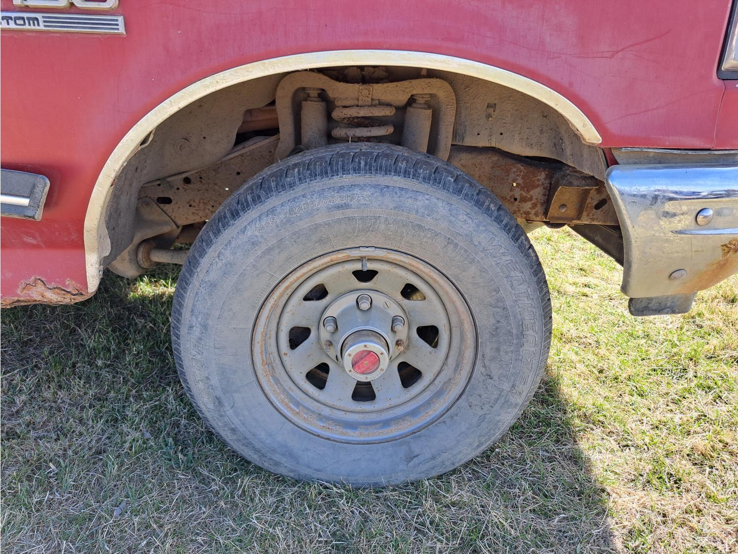 5 L, V8, gas, 4 speed automatic transmission, 8 ft box, 235/75R15 tires