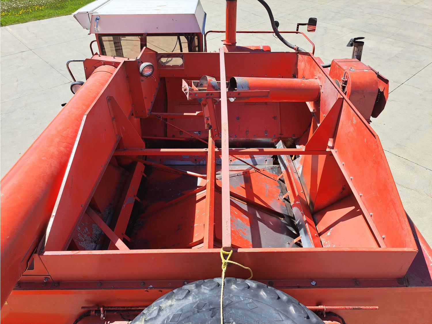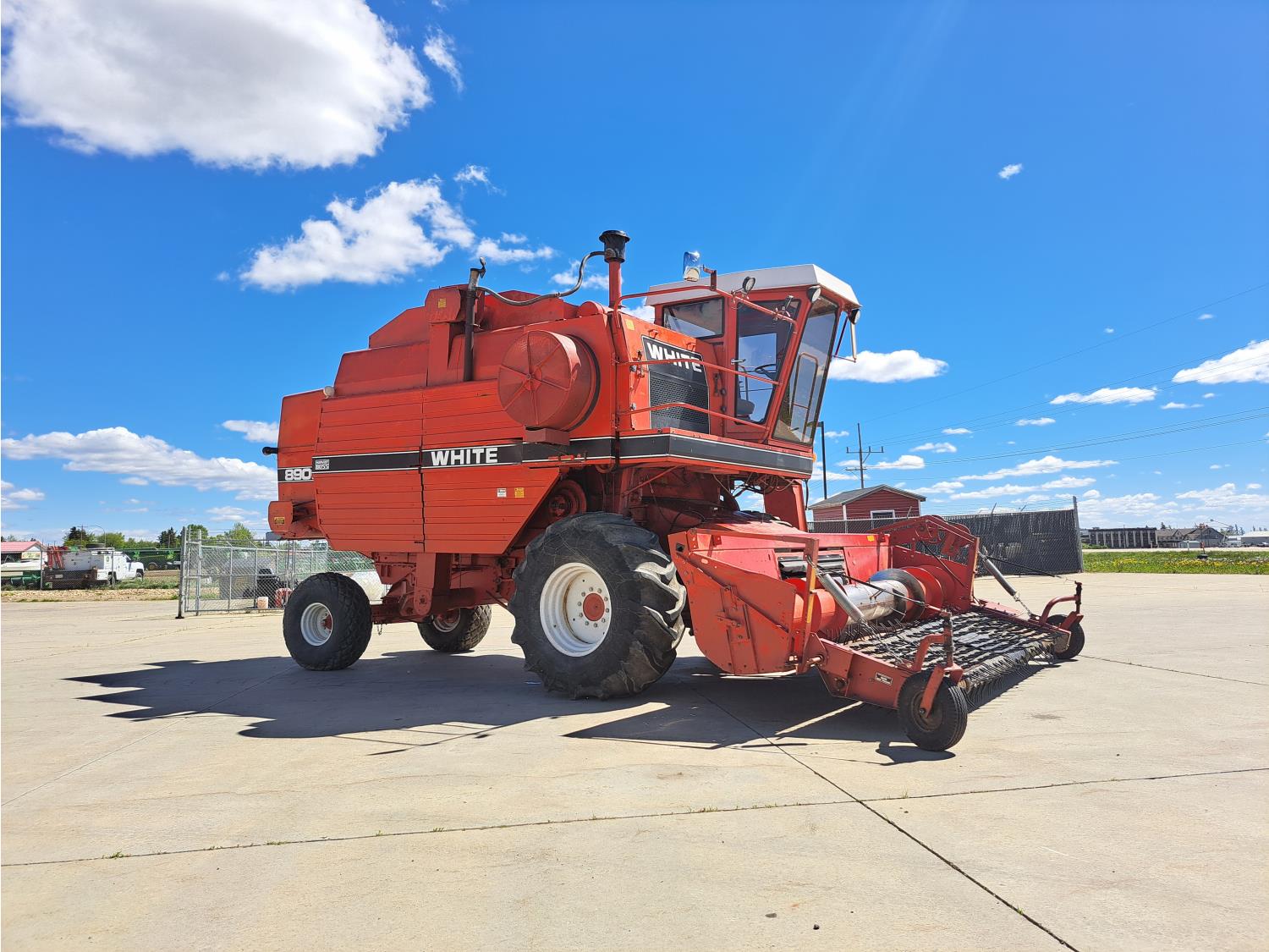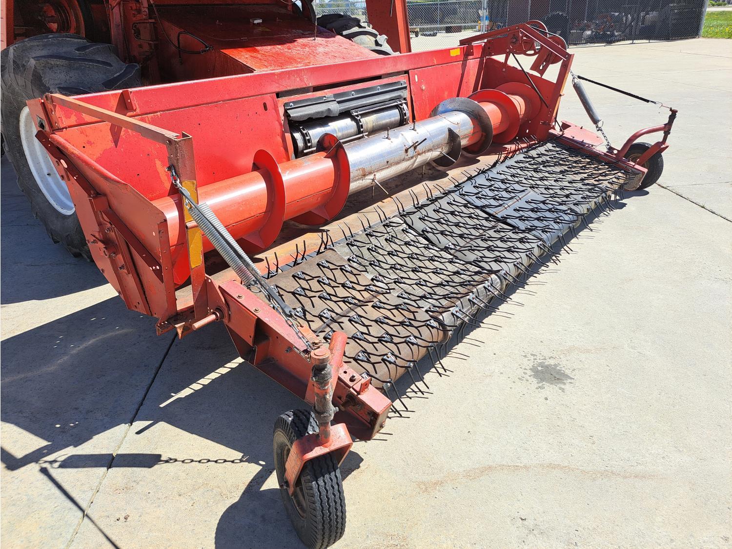 White 990 12 ft pick-up header, rock trap, chopper, 14 ft auger, A/C, radio, 23.1-26 front tires, 16.5L-16.1S rear tires