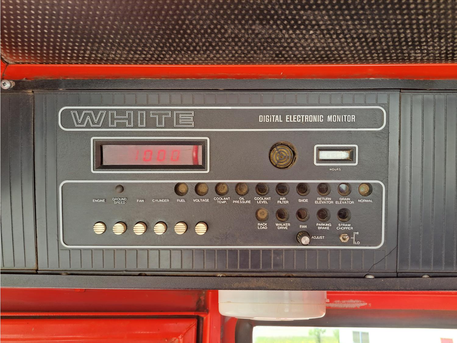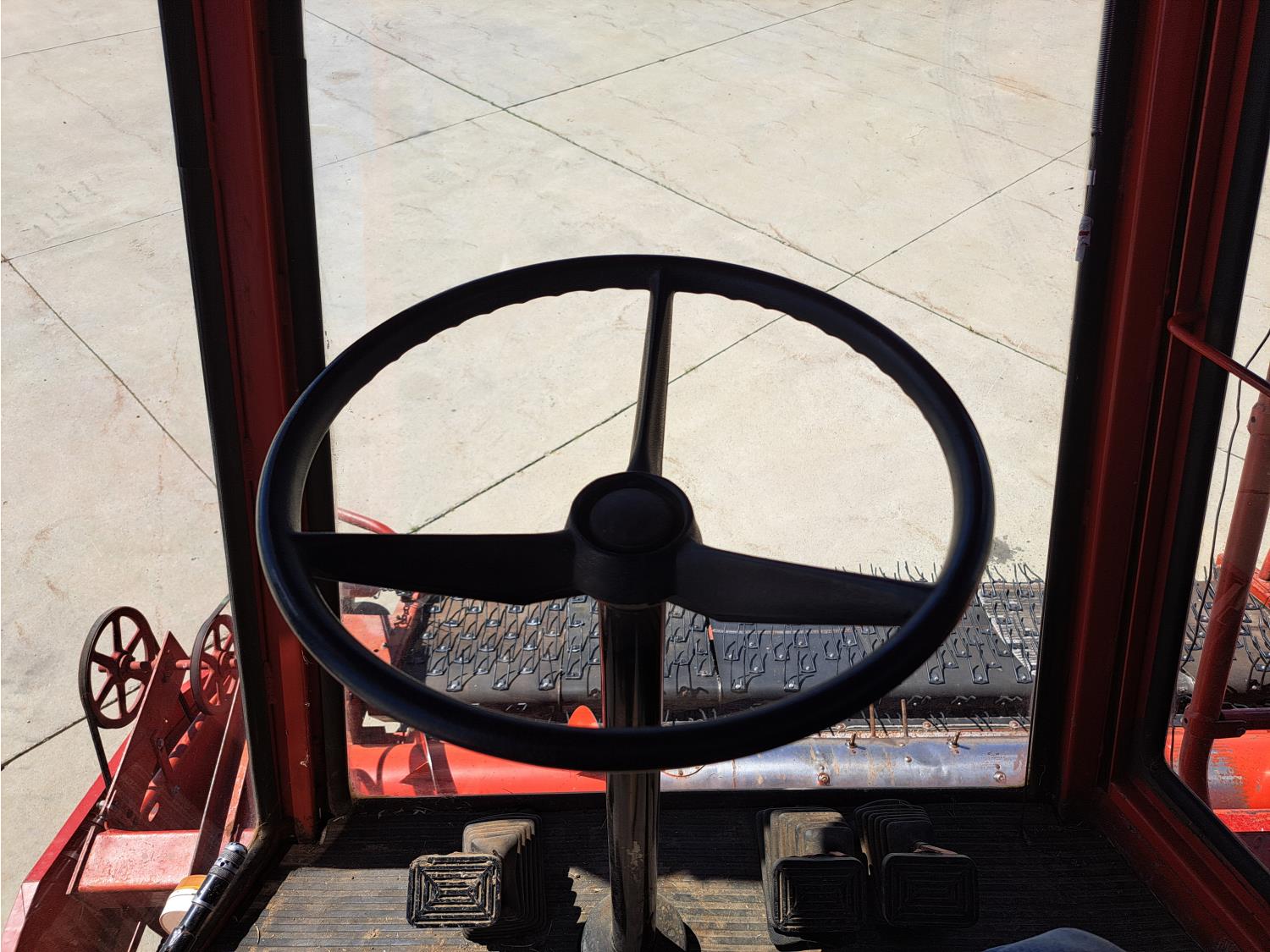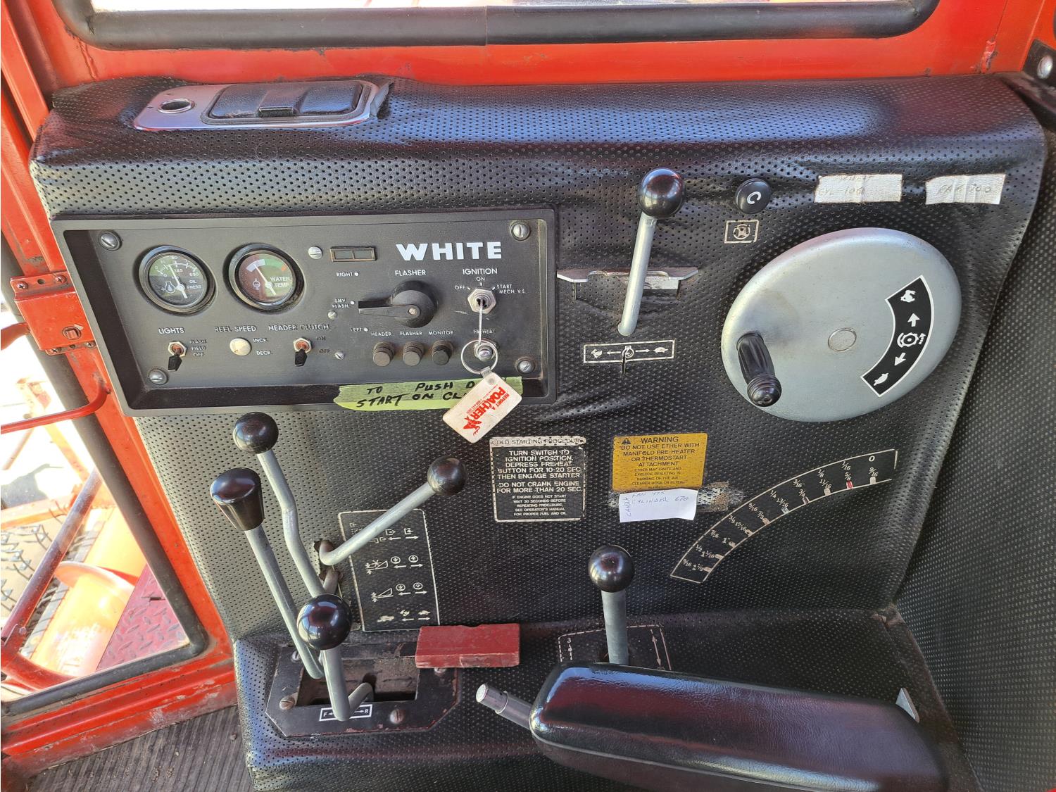 White 990 12 ft pick-up header, rock trap, chopper, 14 ft auger, A/C, radio, 23.1-26 front tires, 16.5L-16.1S rear tires