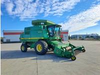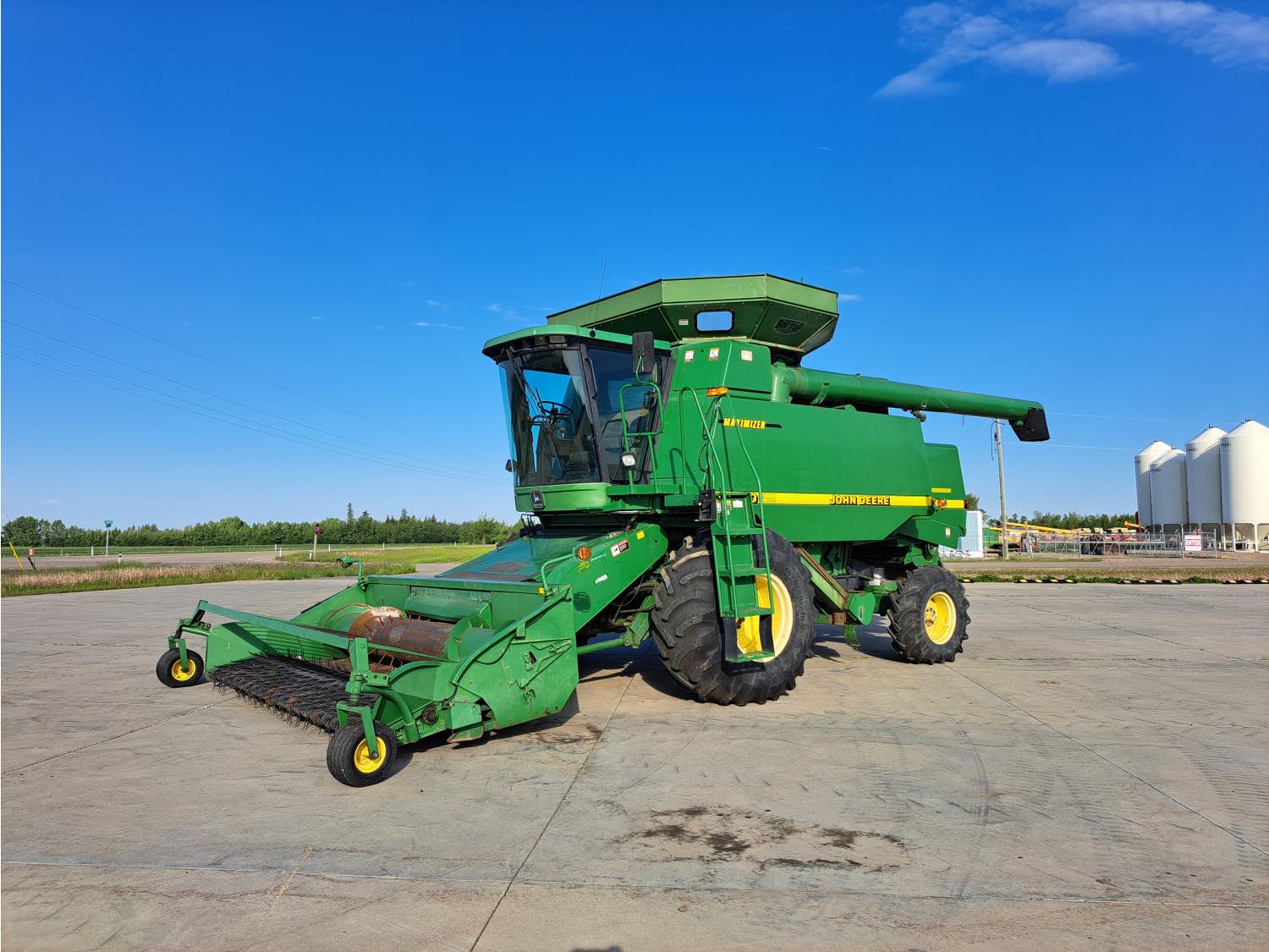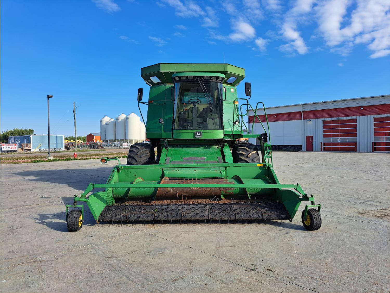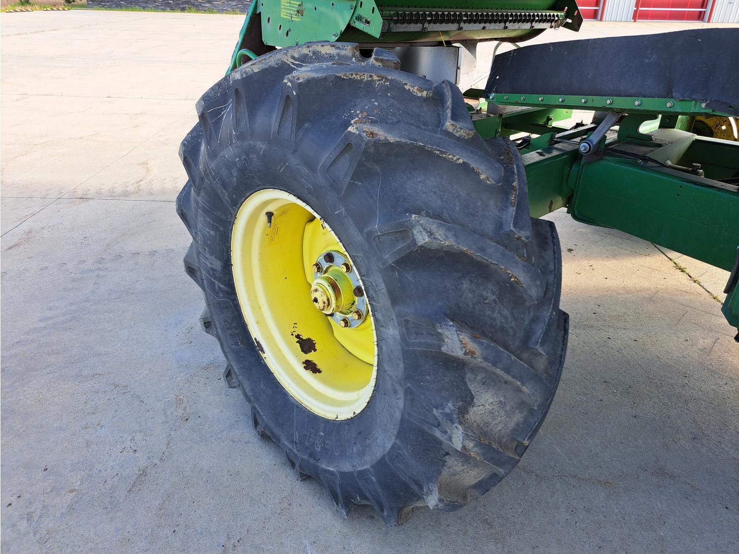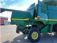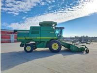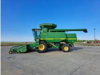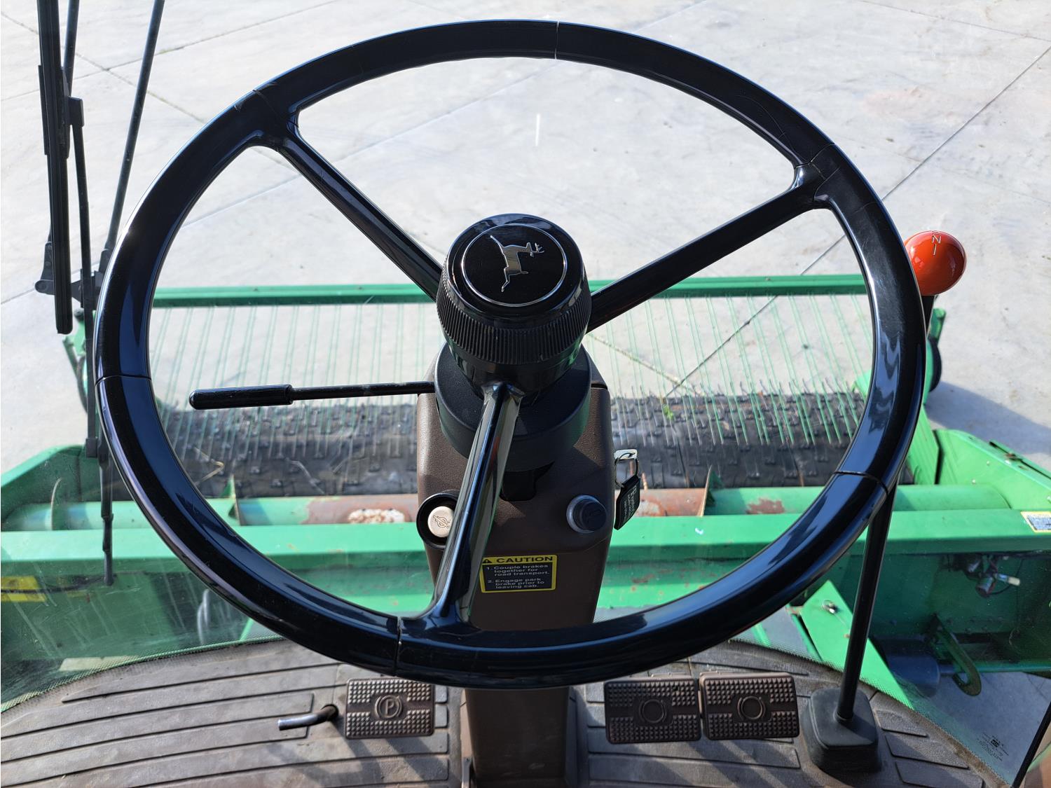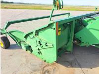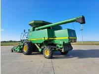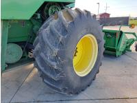 John Deere 914 13 ft pick-up header, variable speed reel, reverser, rock trap, chopper/straw spreader, grain tank extensions, 20 ft auger, A/C, radio, air ride seat, buddy seat, 30.5L-32 front tires, 16.9-24 rear tires