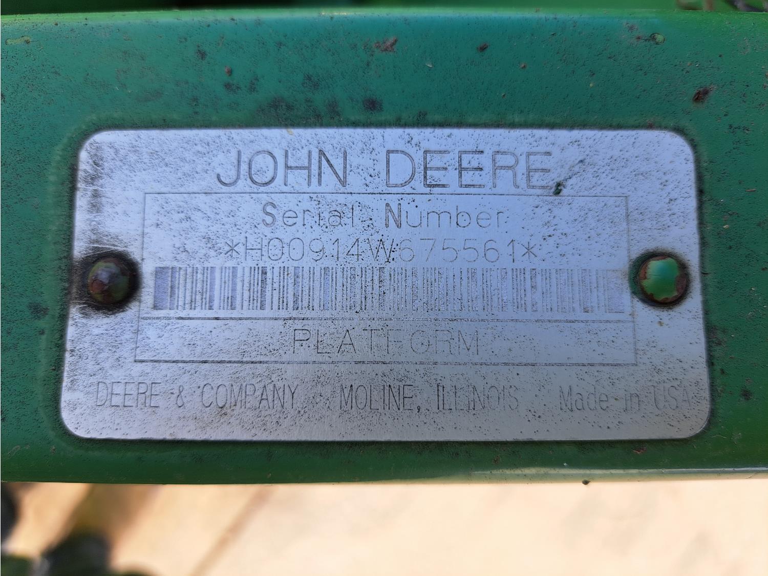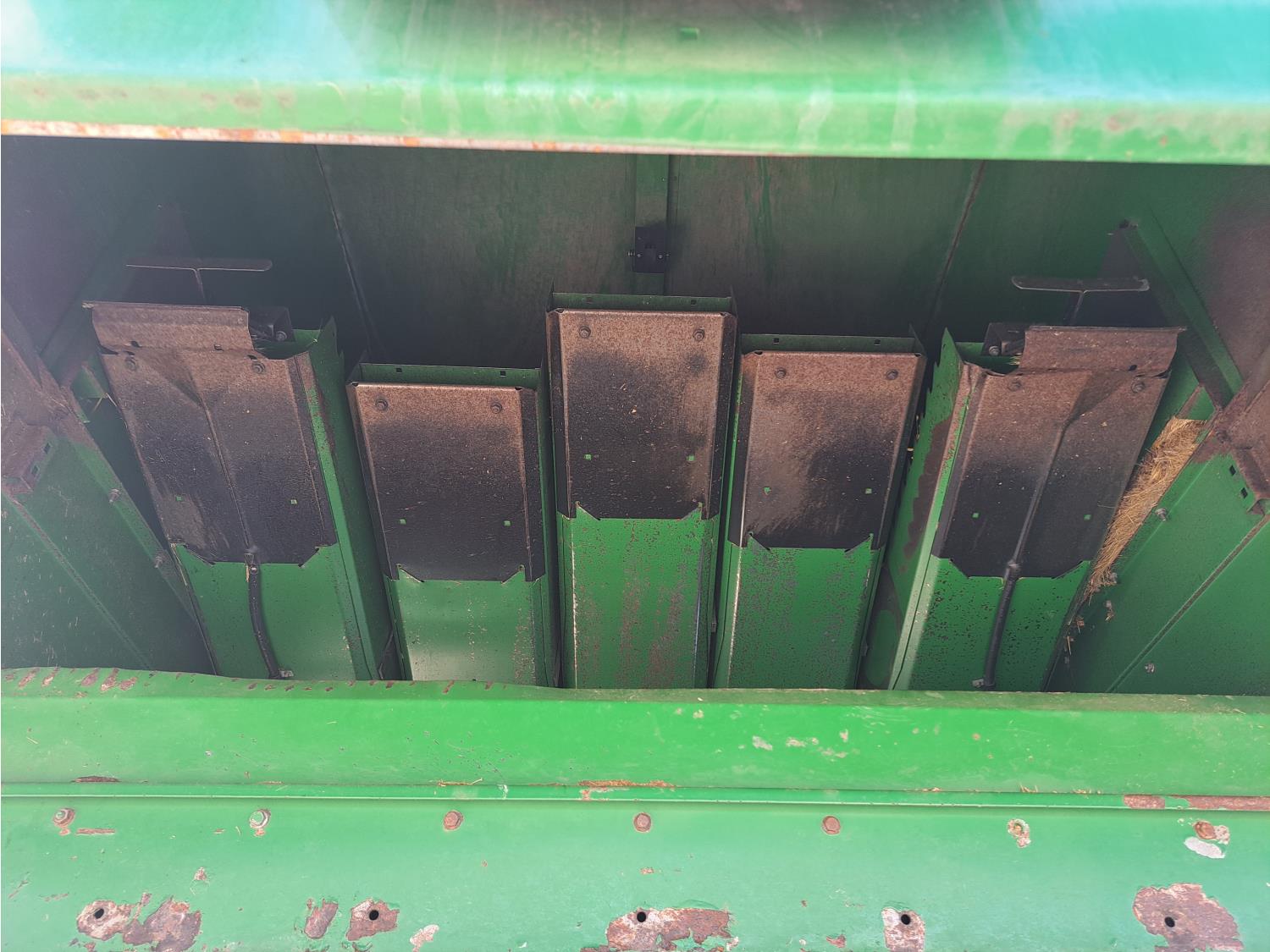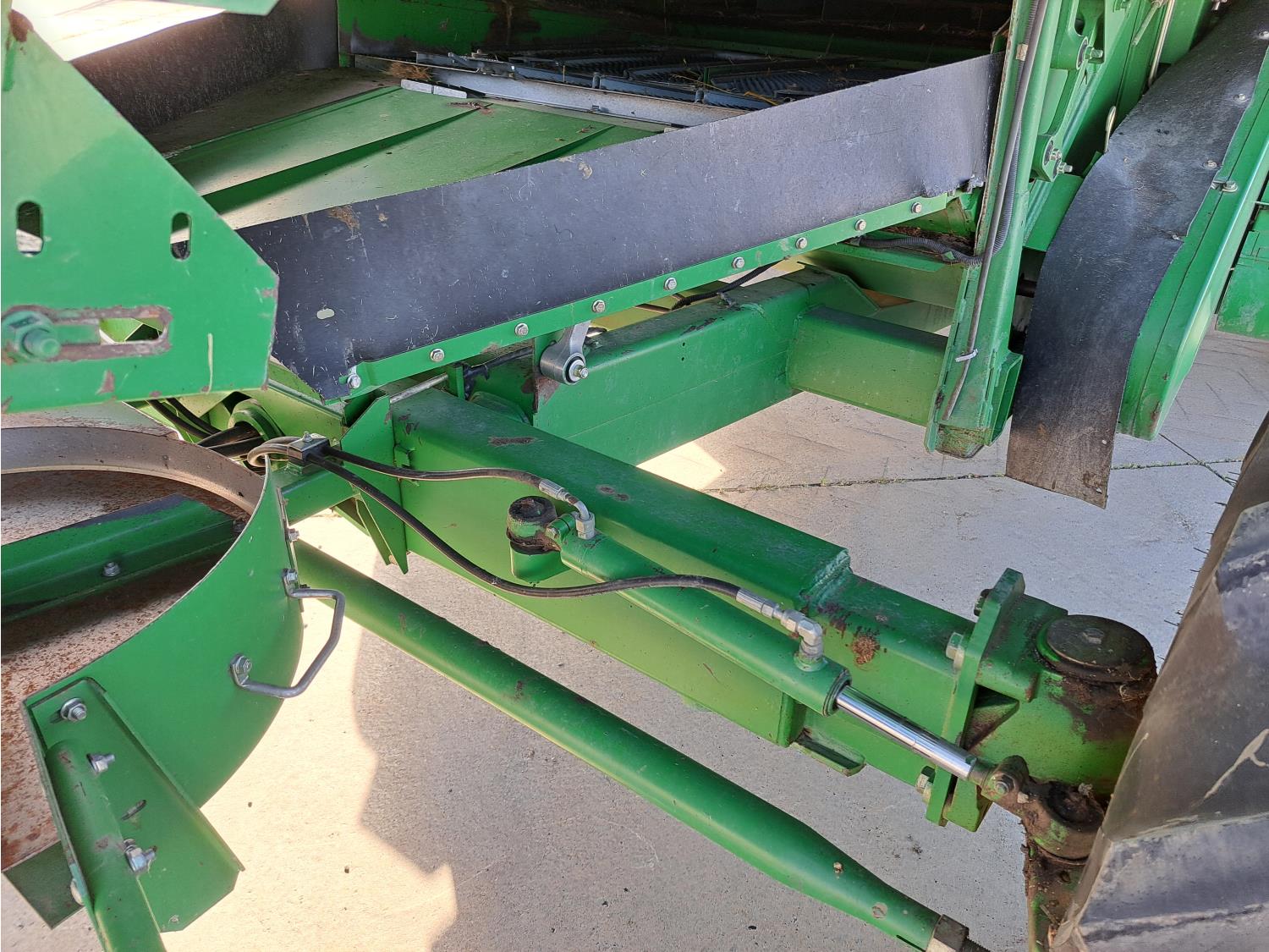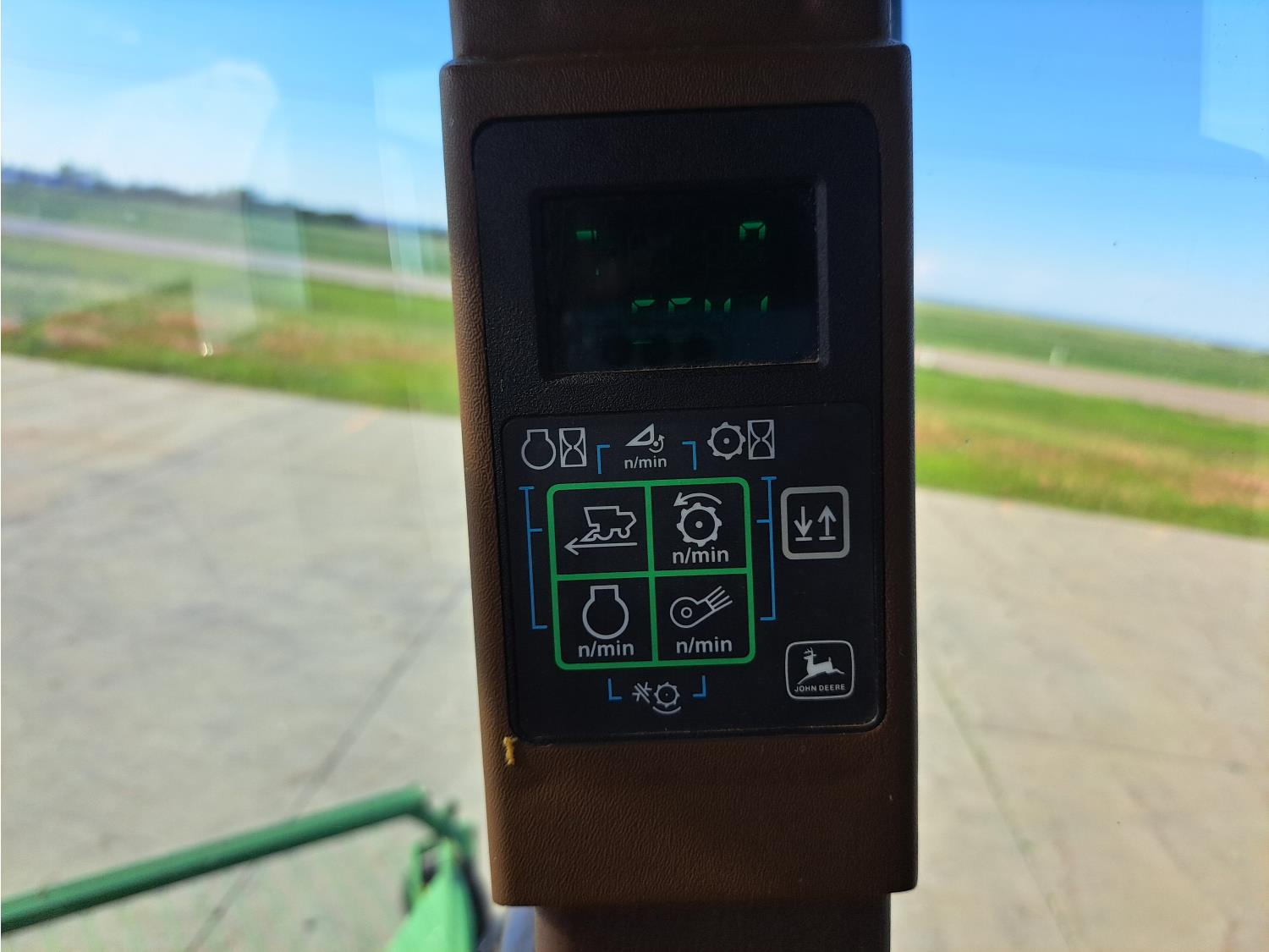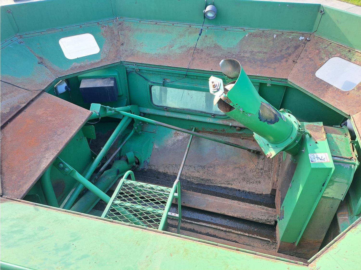 John Deere 914 13 ft pick-up header, variable speed reel, reverser, rock trap, chopper/straw spreader, grain tank extensions, 20 ft auger, A/C, radio, air ride seat, buddy seat, 30.5L-32 front tires, 16.9-24 rear tires