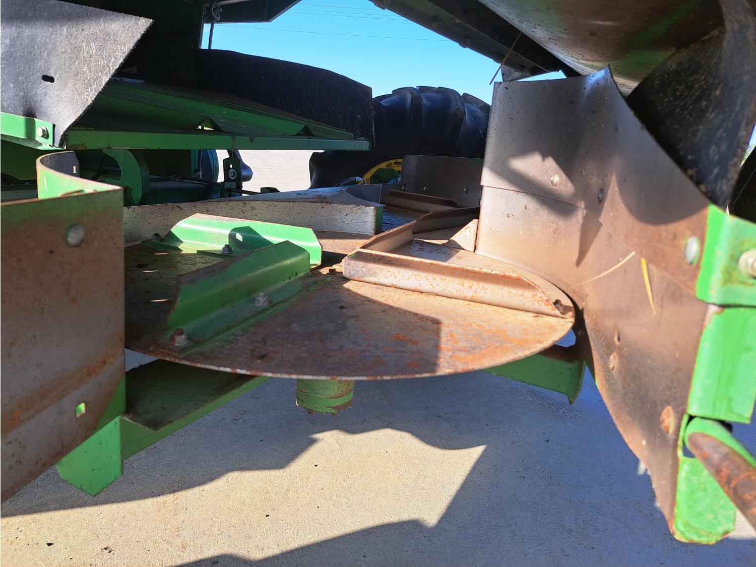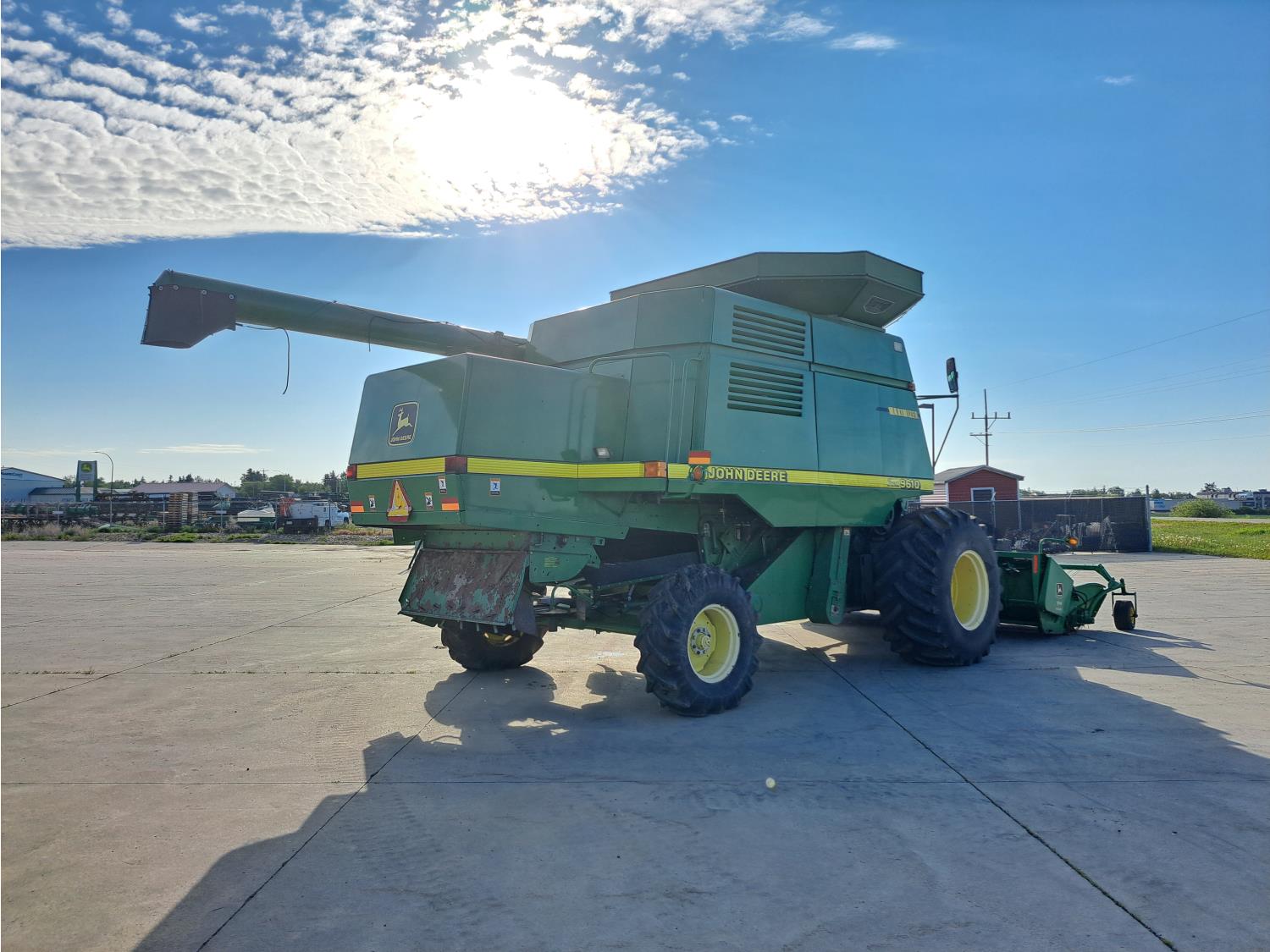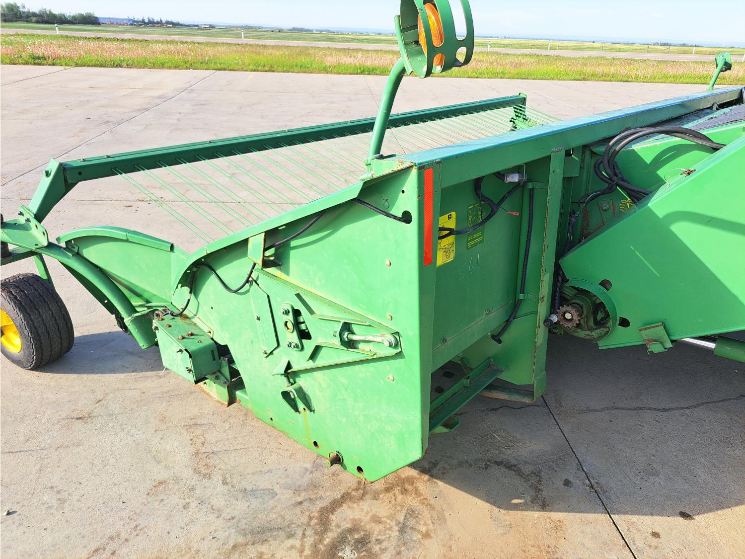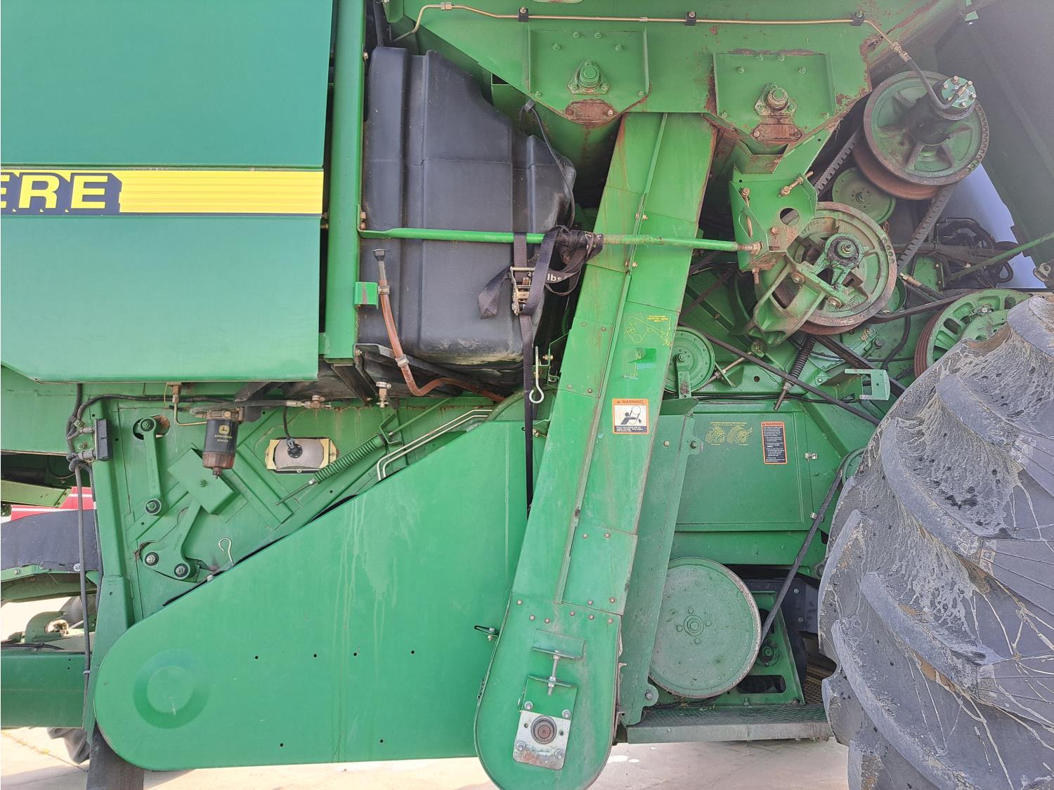 John Deere 914 13 ft pick-up header, variable speed reel, reverser, rock trap, chopper/straw spreader, grain tank extensions, 20 ft auger, A/C, radio, air ride seat, buddy seat, 30.5L-32 front tires, 16.9-24 rear tires